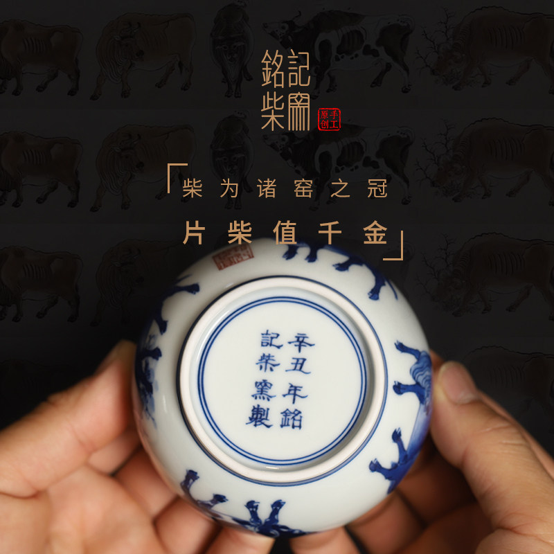 📚 景德镇青花铭记柴窑五牛图大缸杯全手工茶杯手绘杯子陶瓷中式茶具