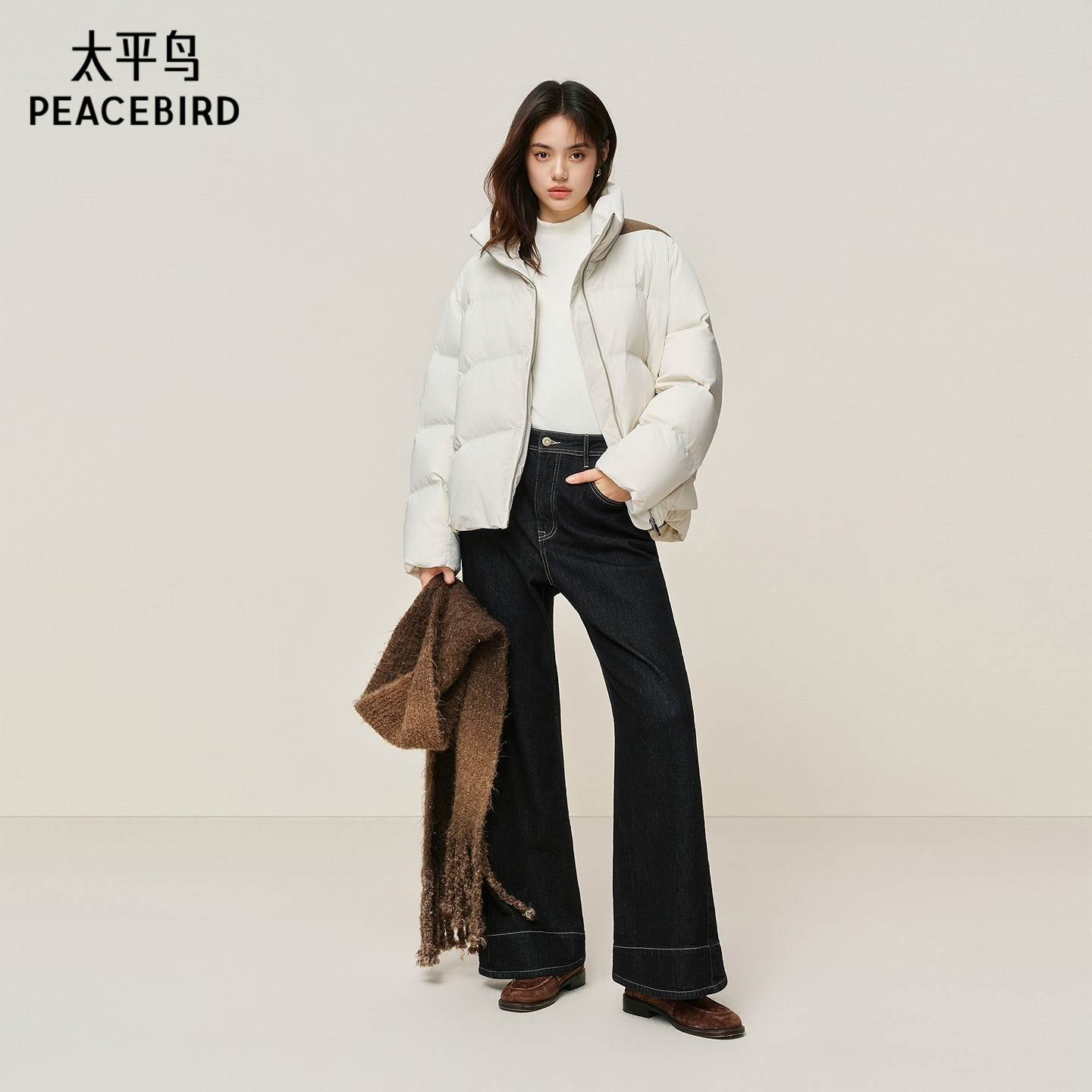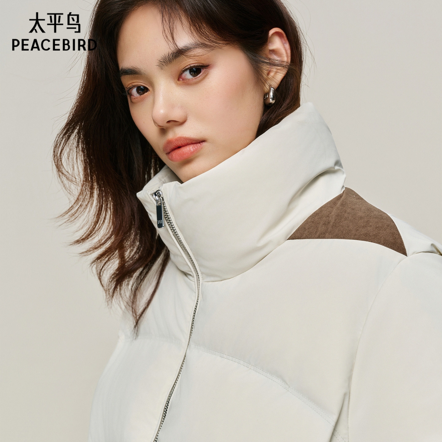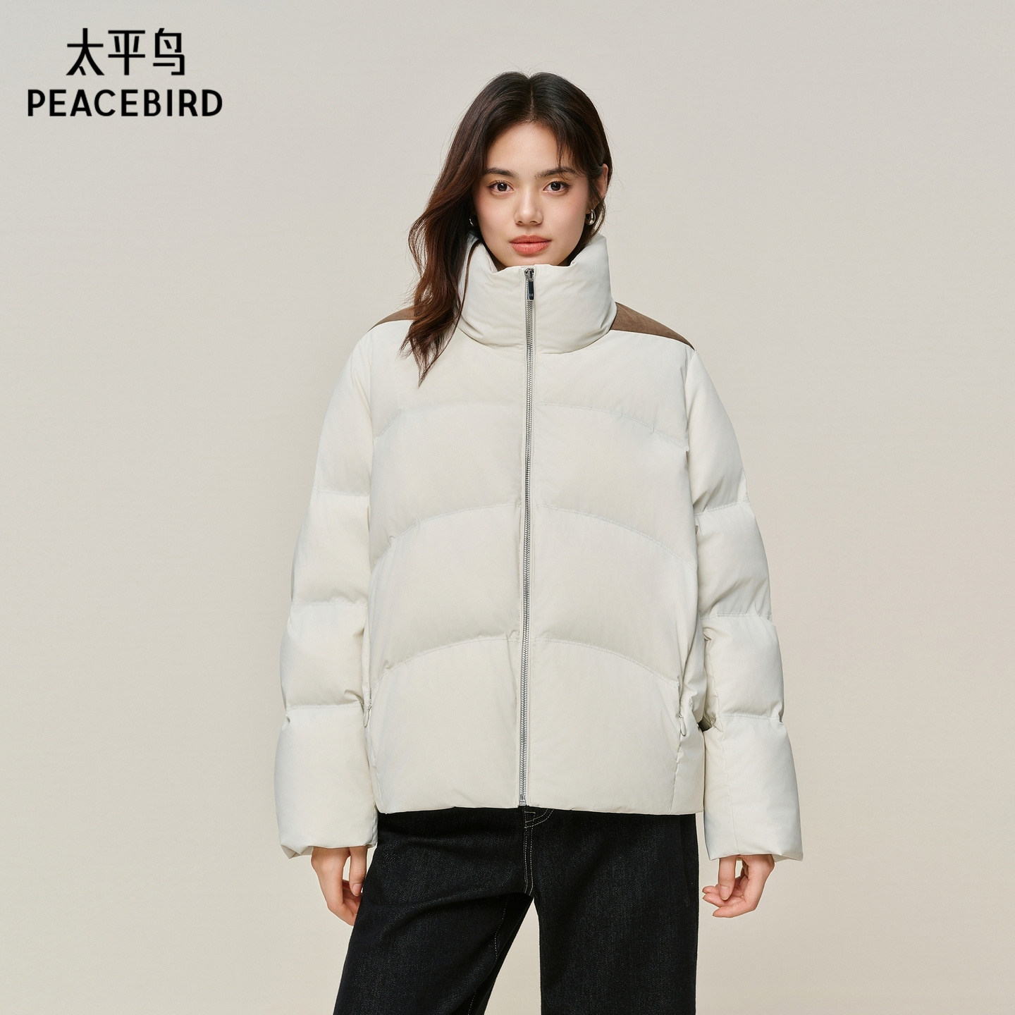 📚 【商场同款】太平鸟白色立领羽绒服女肩部拼接设计外套A3ACF4428