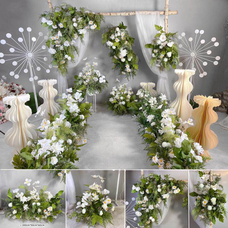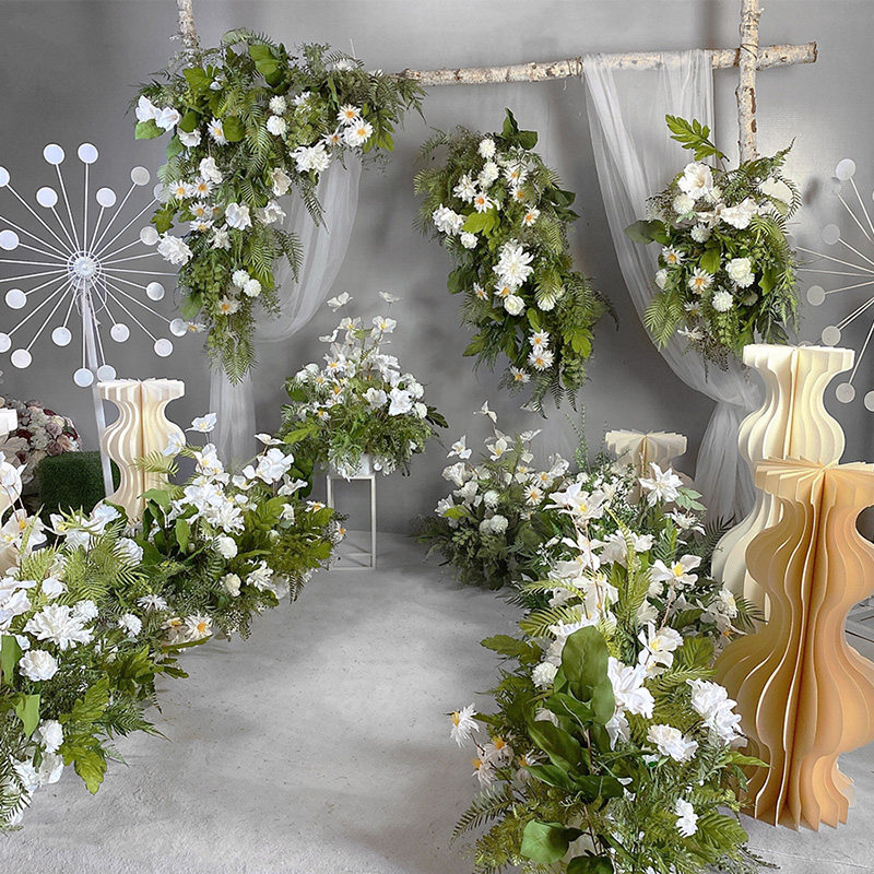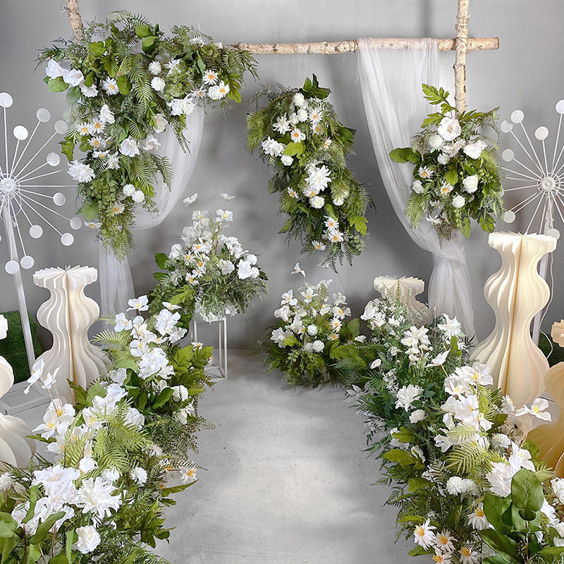 📚 森系绿植婚庆布置白色小清新婚礼花艺舞台背景装饰路引地排花点花