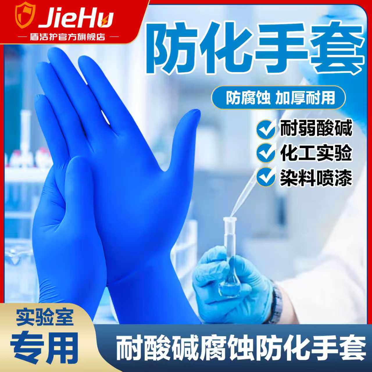 📚 耐酸碱实验室专用丁腈手套防腐蚀加厚耐用检验化验防水食品级家用