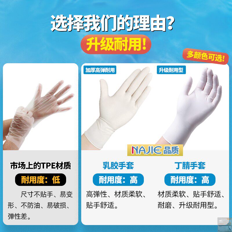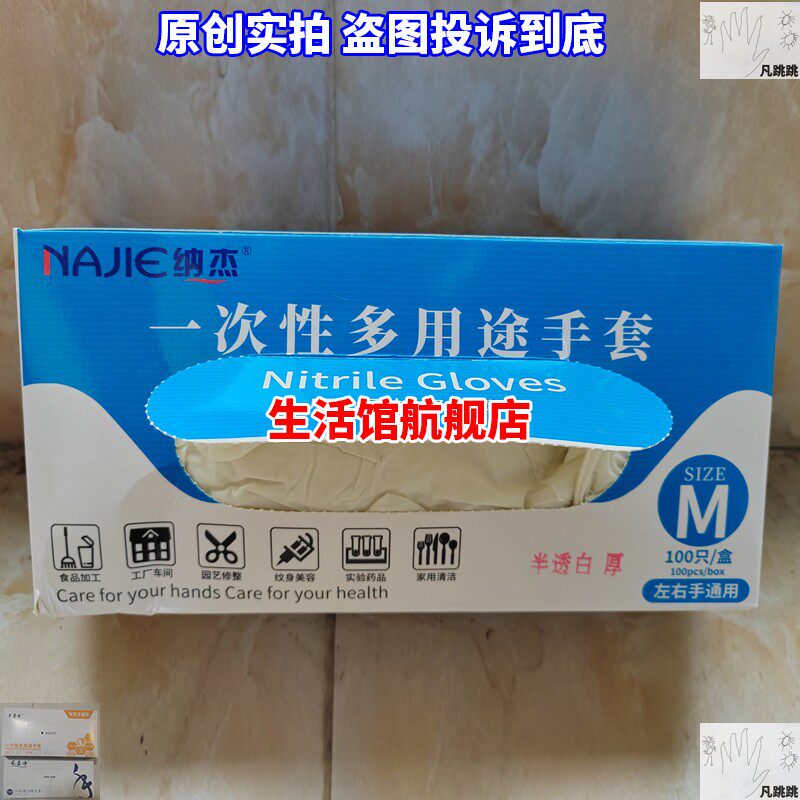 📚 一次性多用途手套纳杰加长型防护半透白丁腈乳胶化验室专用卖菜用