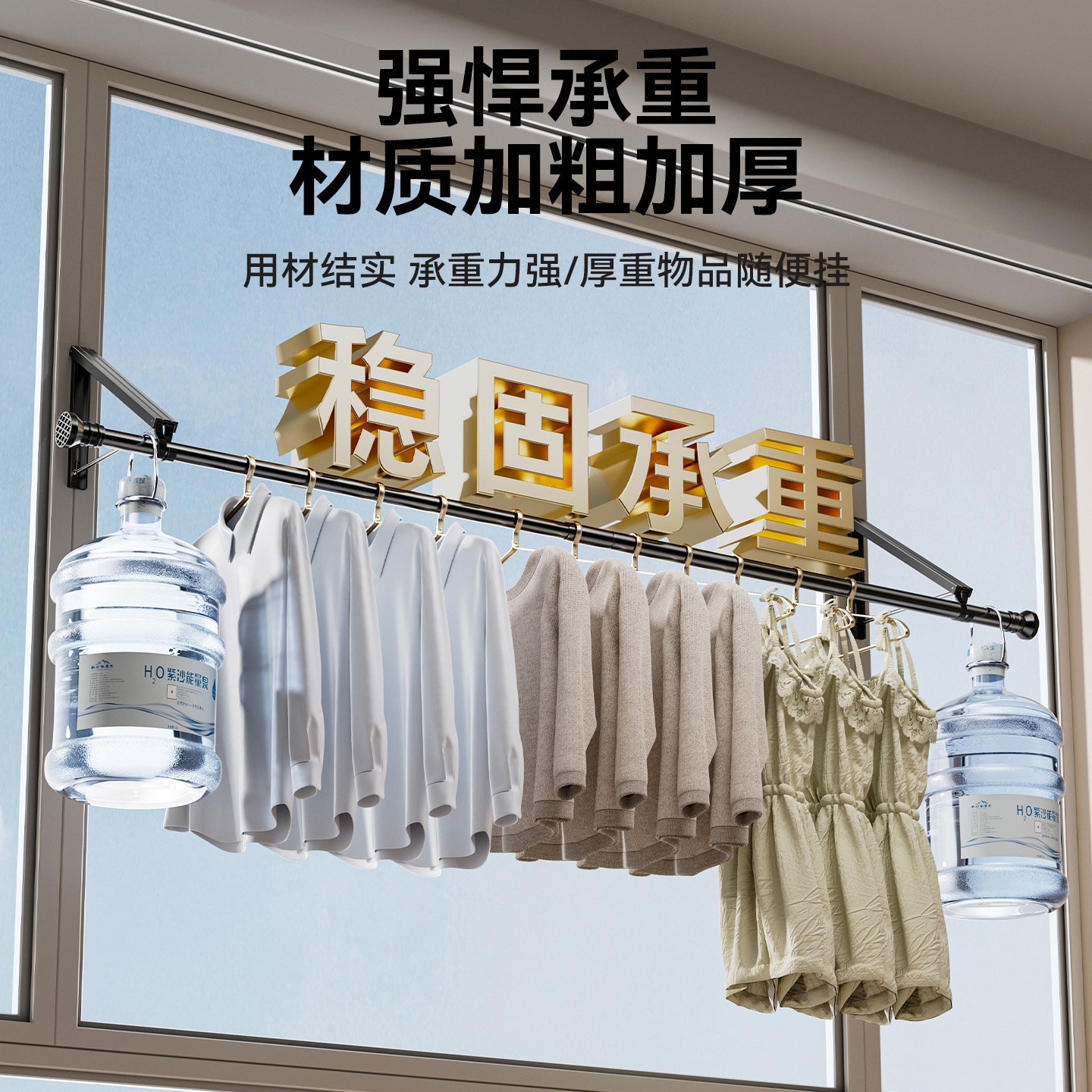📚 阳台凉衣神器极窄隐形伸缩折叠晾衣架晒衣架墙壁可以悬挂式的挂杆