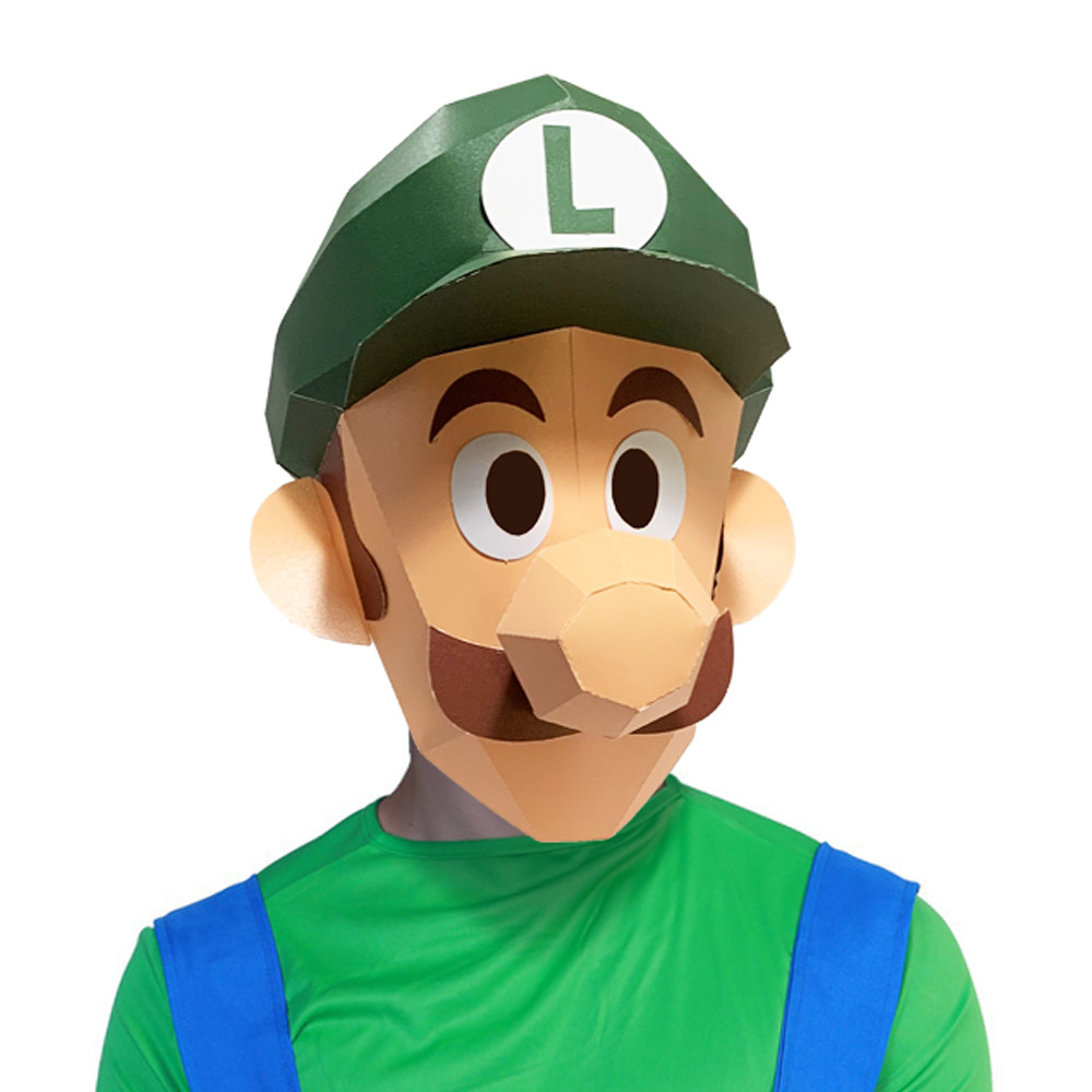 📚 路易吉超级玛丽可戴头套面具纸模卡通动漫游戏cos表演道具路易基