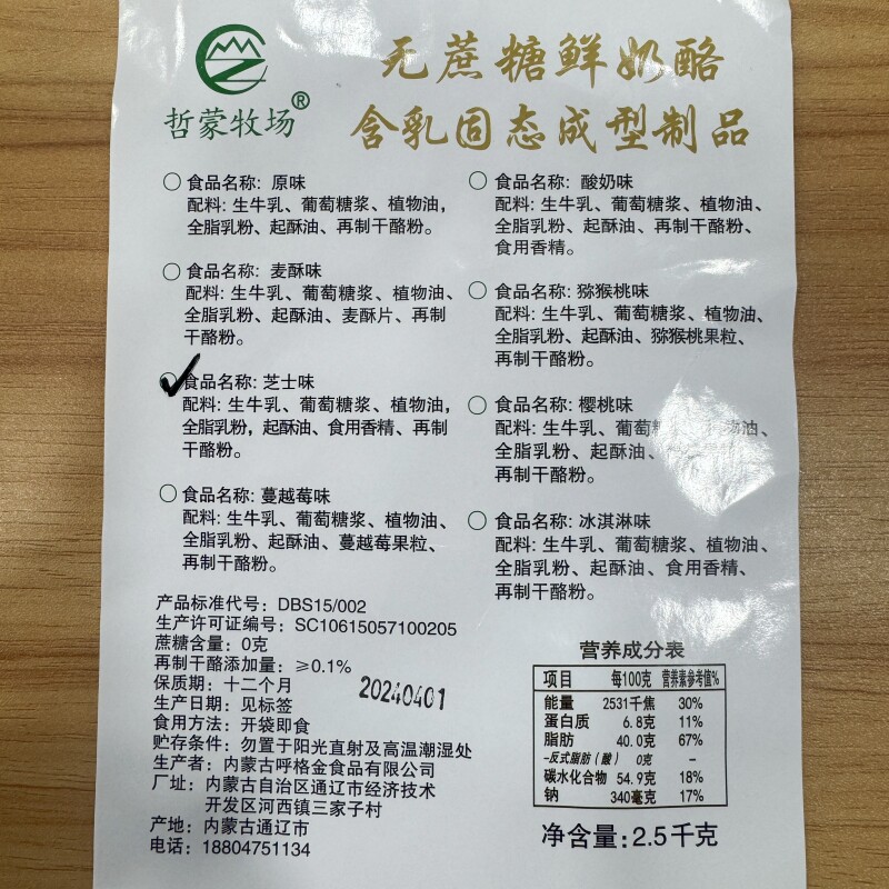 📚 哲蒙牧场无蔗糖鲜奶酪奶制品内蒙特产微甜口感奶酥小零食独立包装