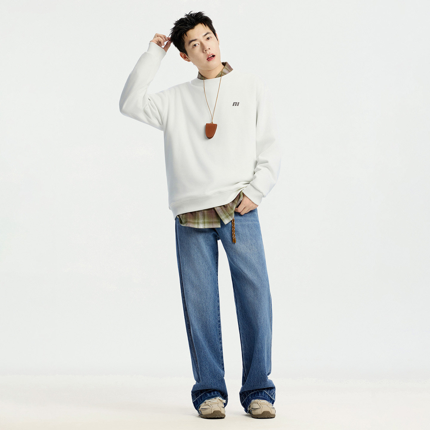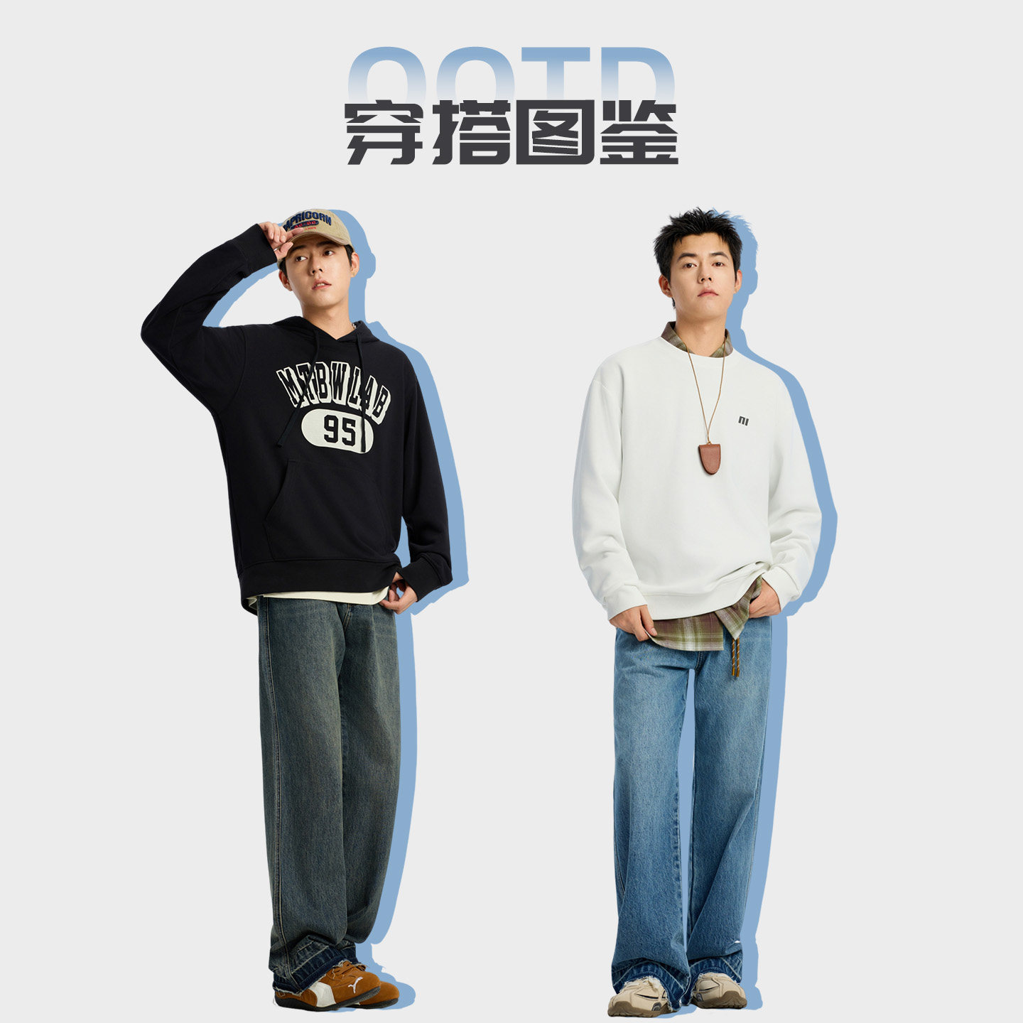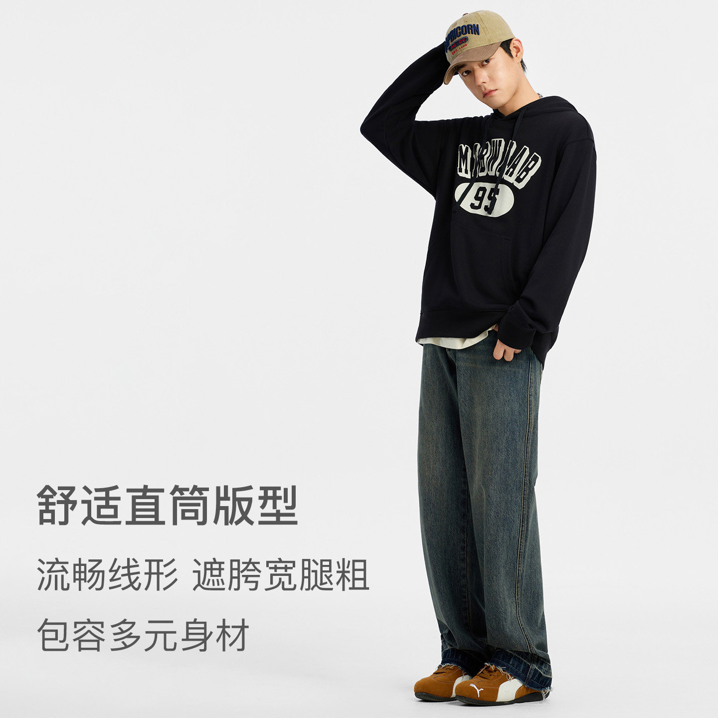 📚 美特斯邦威牛仔裤男士秋冬季美式复古宽松加厚直筒阔腿长裤