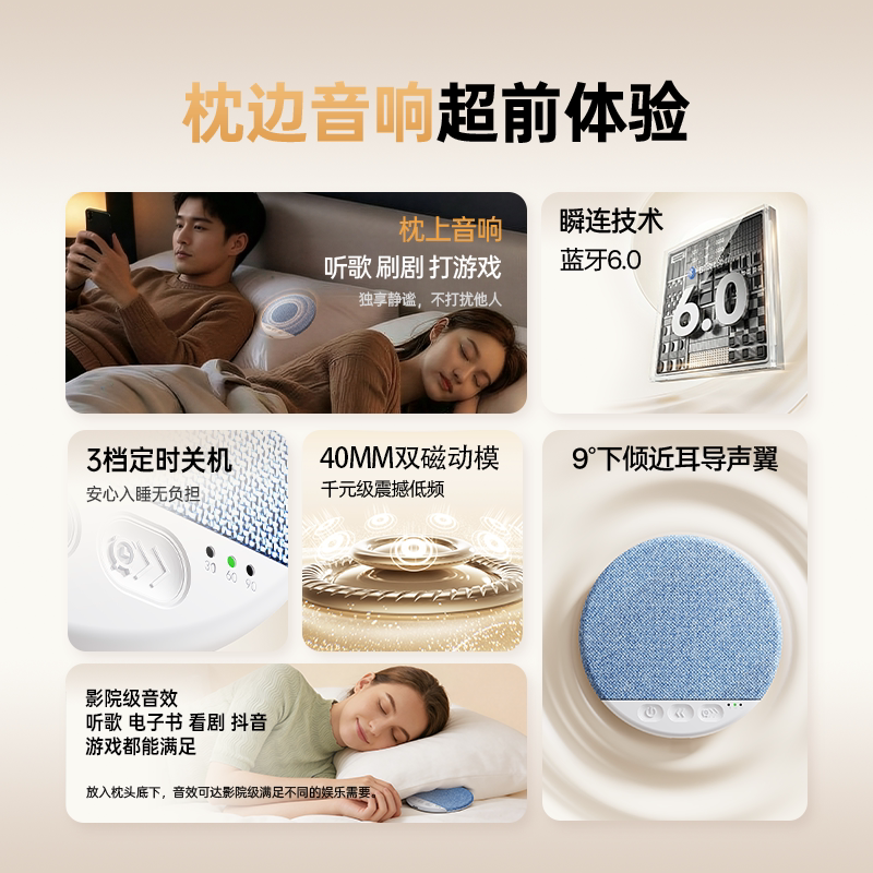 📚 枕下睡眠音响超薄音碟助眠音箱骨传导白噪音枕边蓝牙音箱2026新款