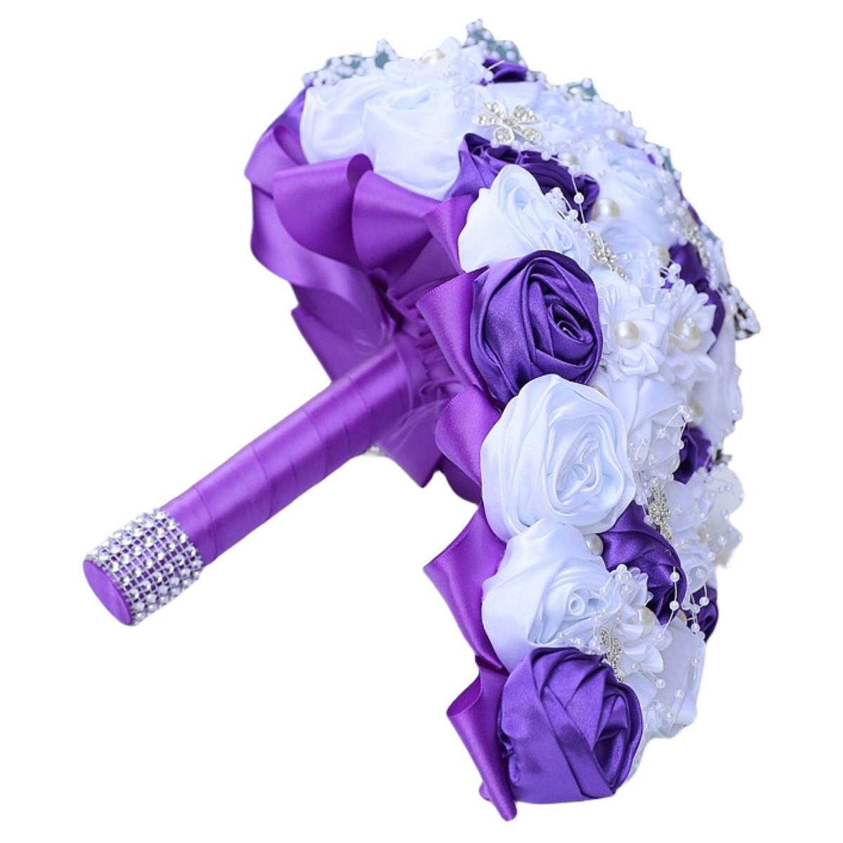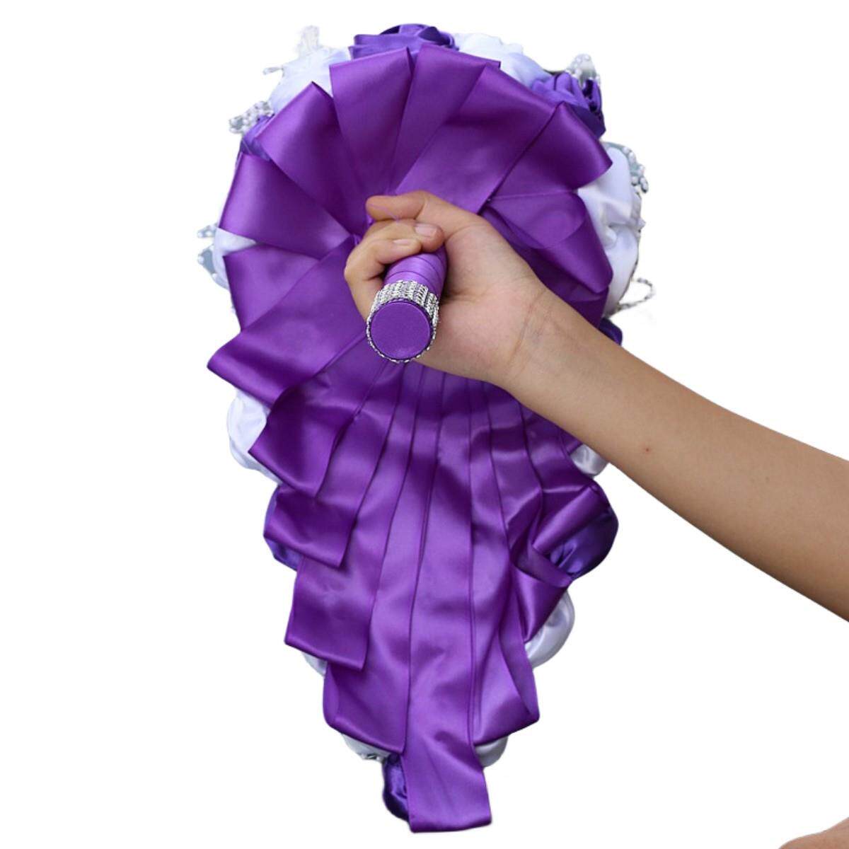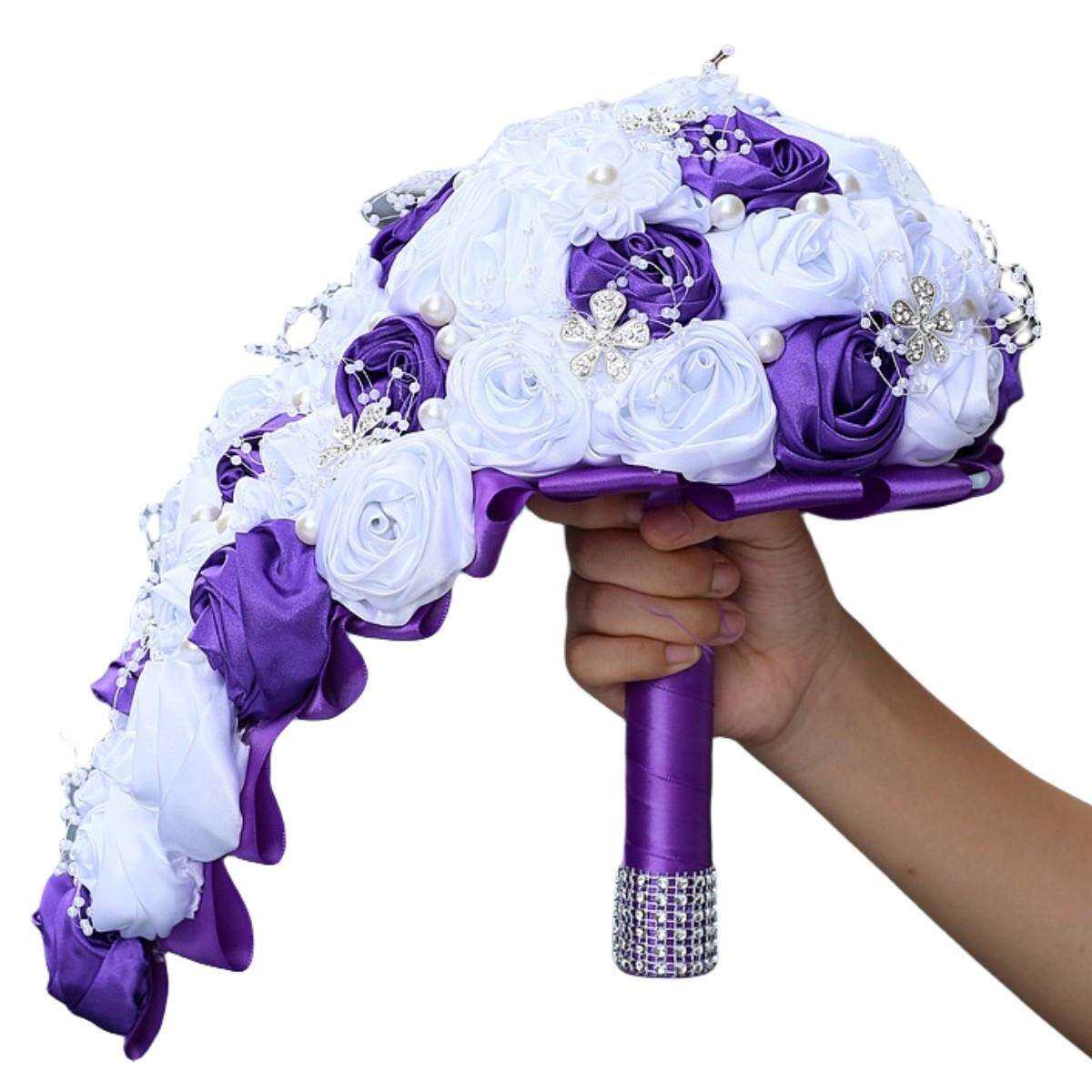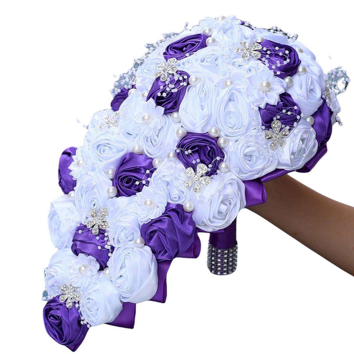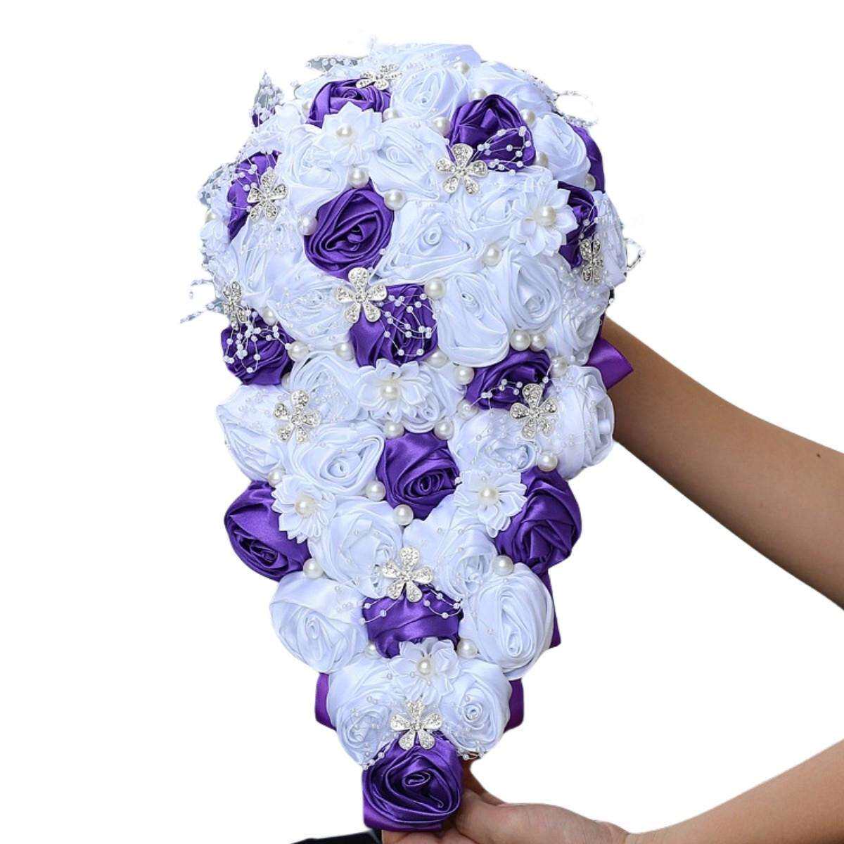 📚 珍珠水钻手捧花水滴瀑布手捧花水钻新娘手捧花满钻婚庆花束W3017P