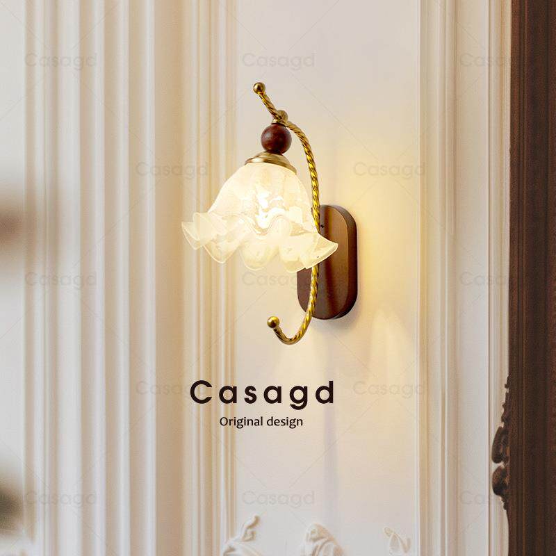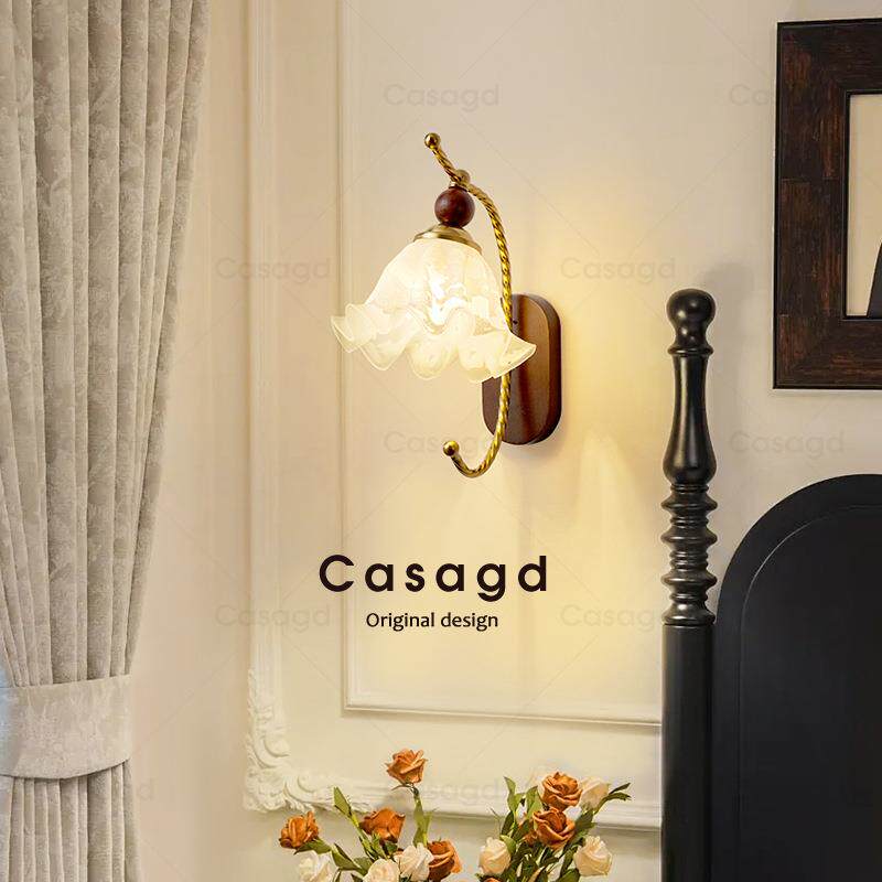 📚 中古风客厅壁灯法式复古玻璃高级温馨卧室床头走廊过道灯具casagd