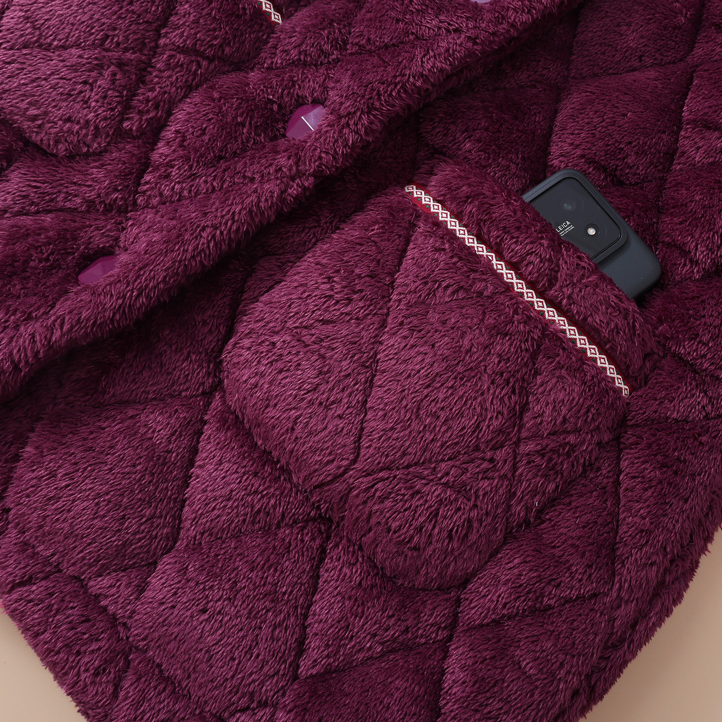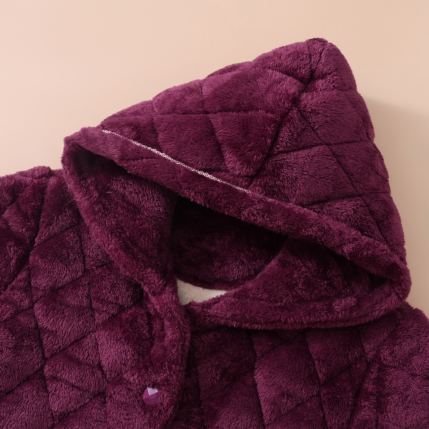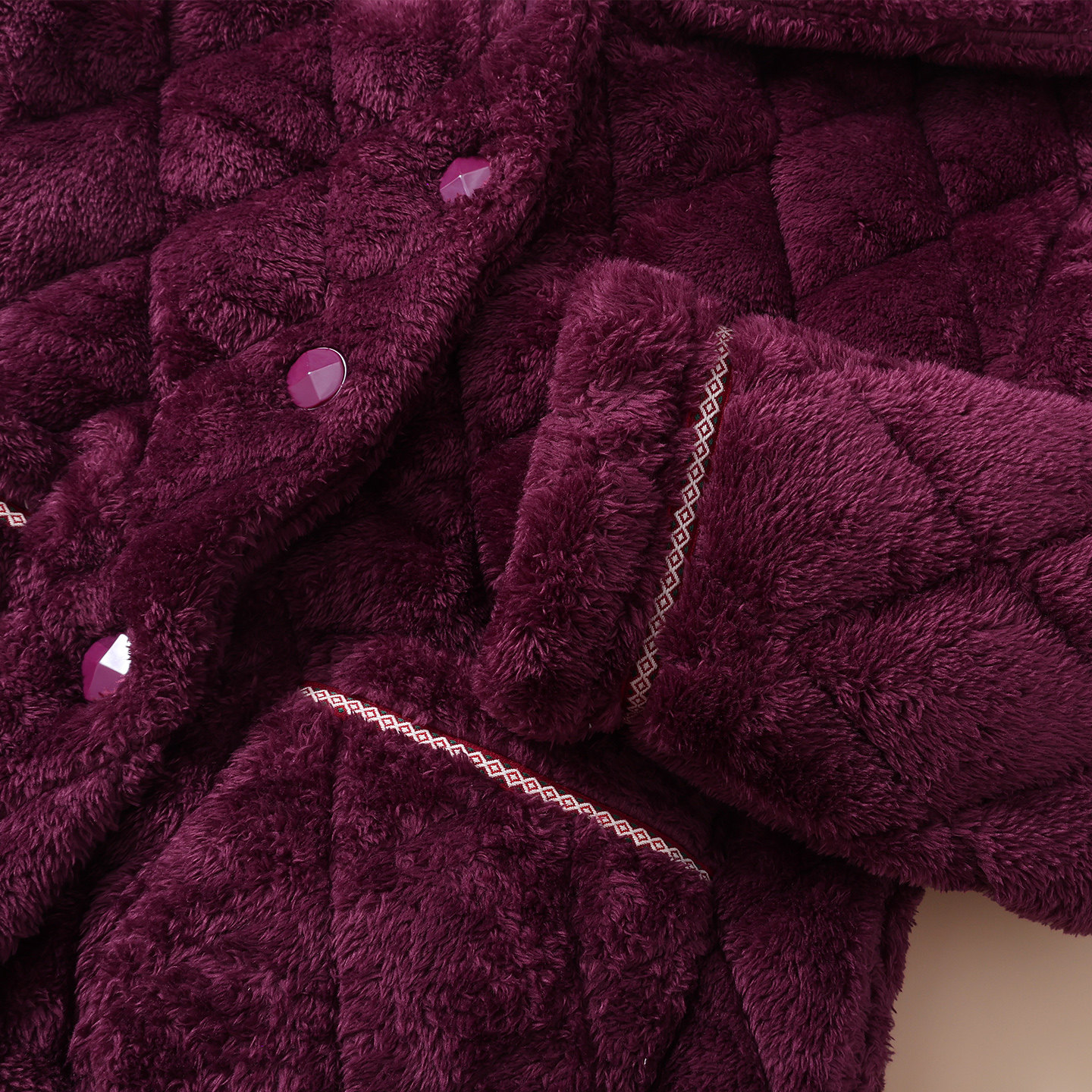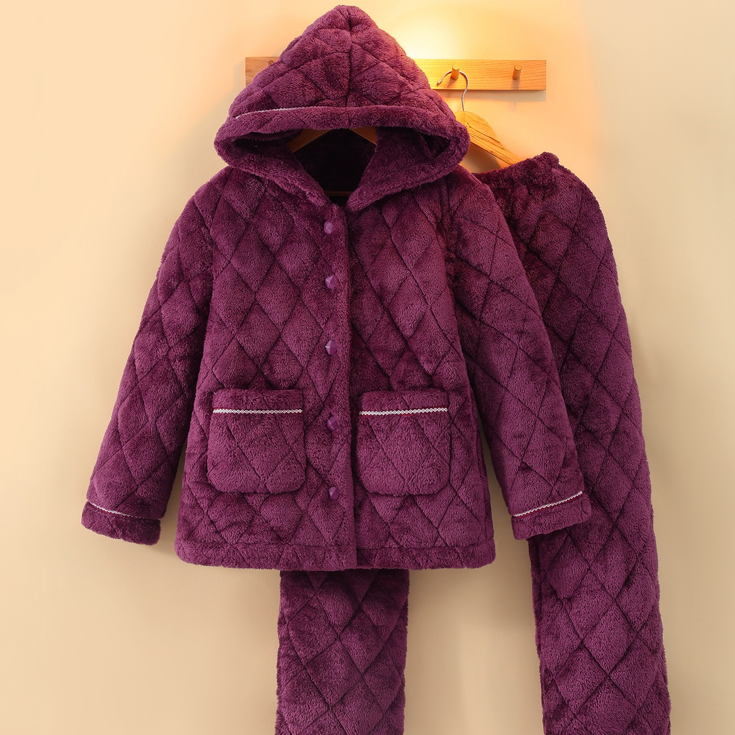 📚 连帽睡衣女冬季加厚加绒中老年保暖珊瑚绒三层夹棉套装冬款家居服