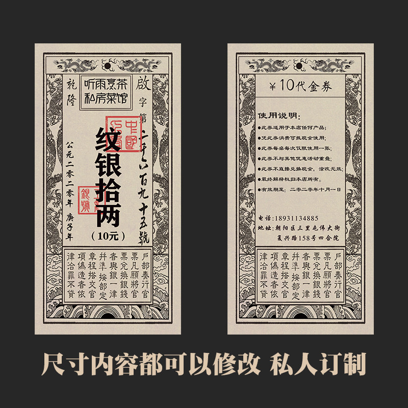 📚 景区游戏银票定制粮票样式优惠券代金券印刷复古餐饮钱抵用券双面