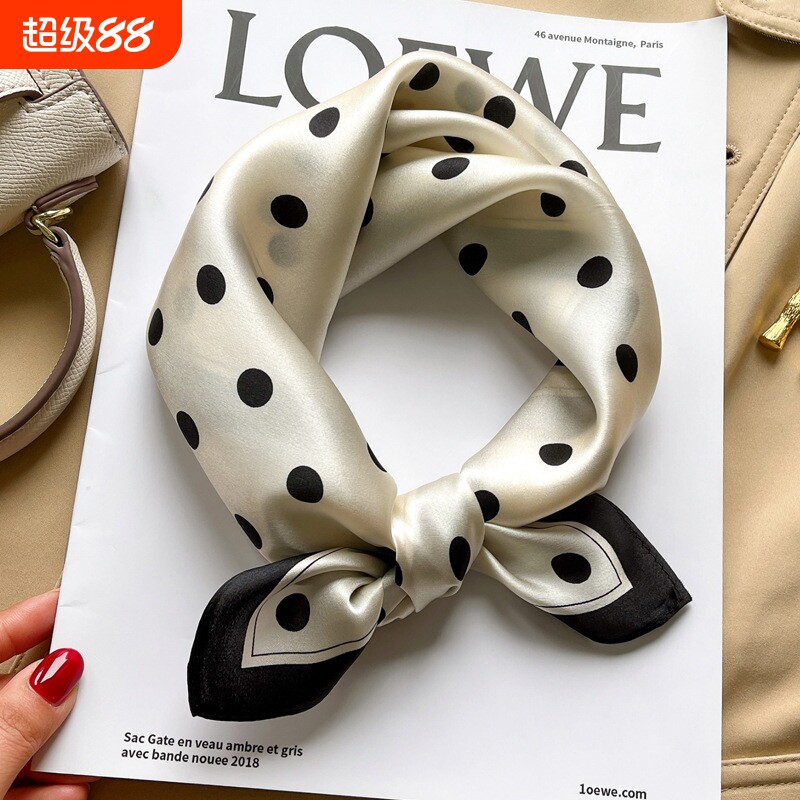 📚 高级感波点丝巾100%真丝桑蚕丝小方巾女新款洋气时尚围巾领巾高档