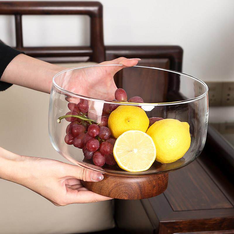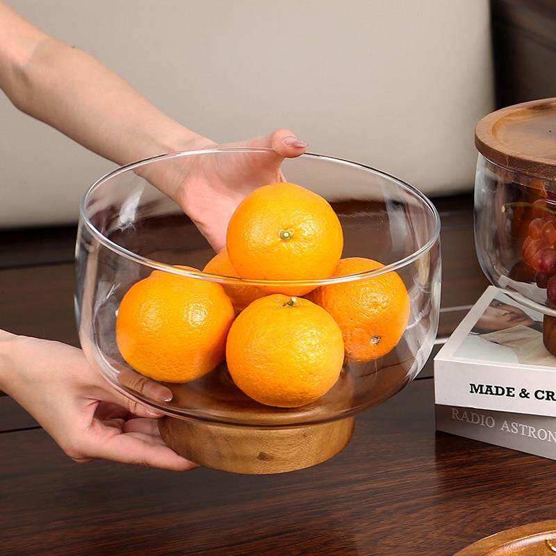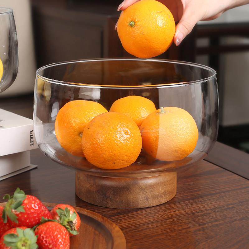📚 玻璃果盘客厅茶几家用精致糖果盆干 干果盘木质收纳盒高脚水果盘
