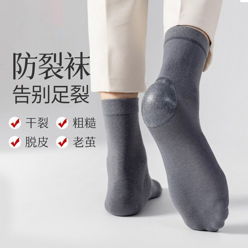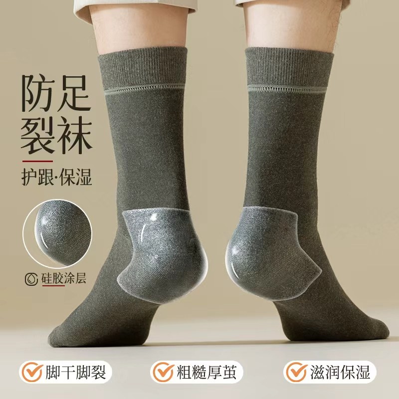📚 草门人防裂袜子男士中筒硅胶套足跟厚棉春秋纯棉防脚裂脚后跟干裂