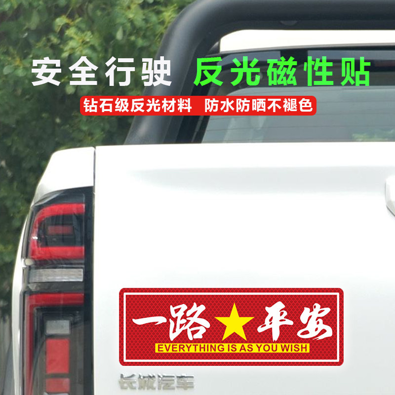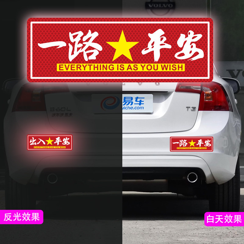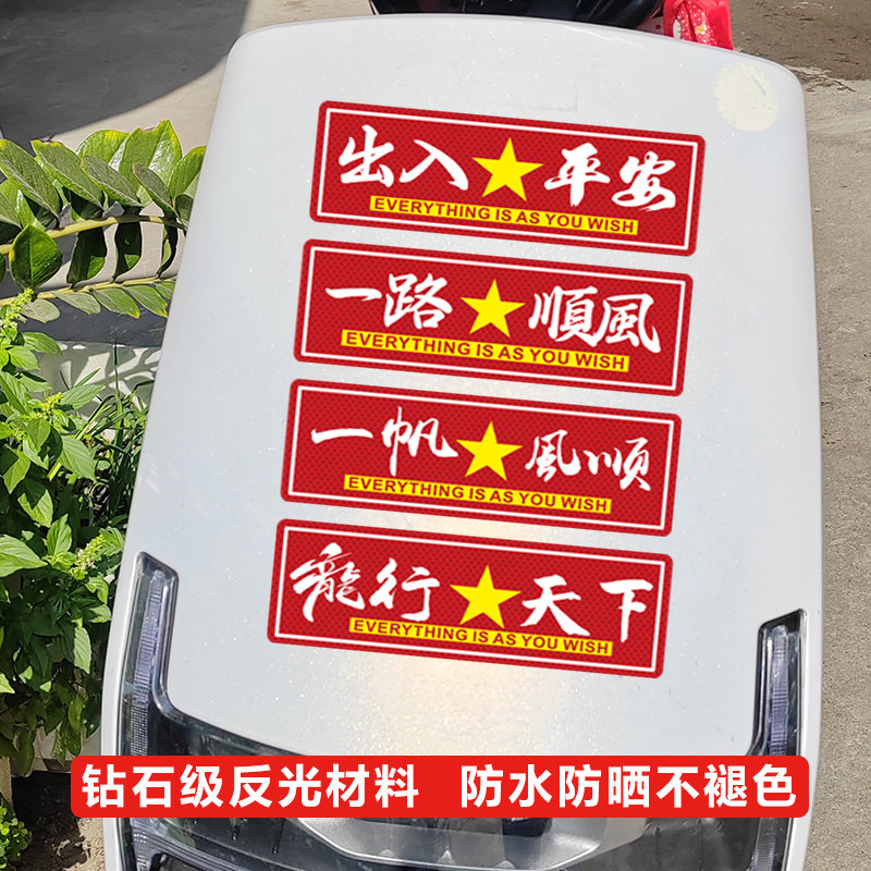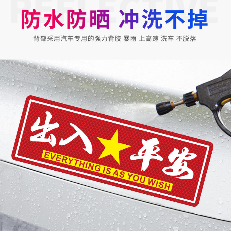 📚 一路平安反光车贴出入平安磁性新年汽车摩托车贴划痕遮挡车身贴纸