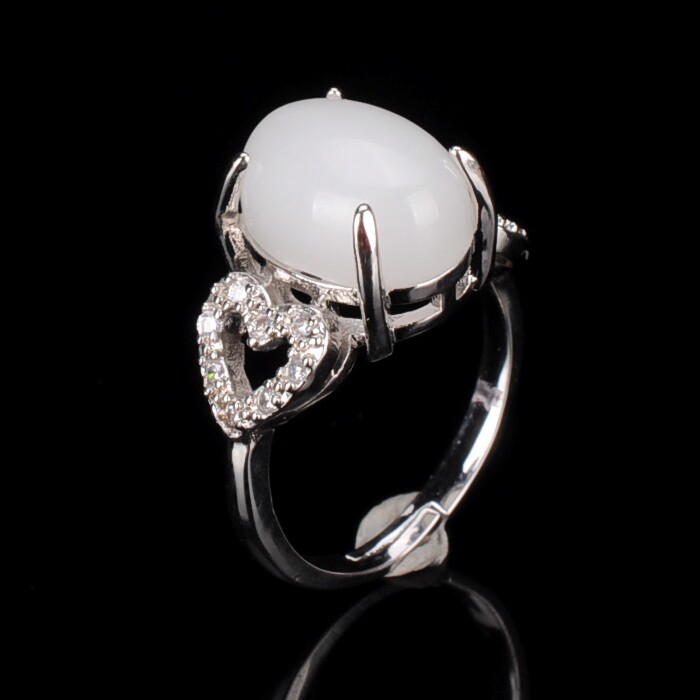 📚 新疆和田玉女款戒指镶玉戒指白玉简约时尚活口玉戒指952银指环