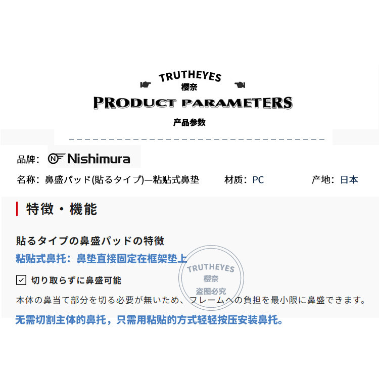 📚 日本进口西村工具板材眼镜鼻垫贴 粘贴式防滑增高眼镜鼻托 配件