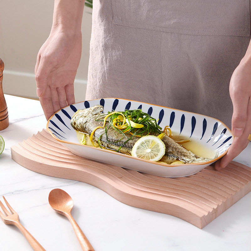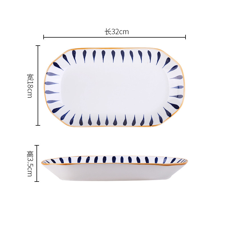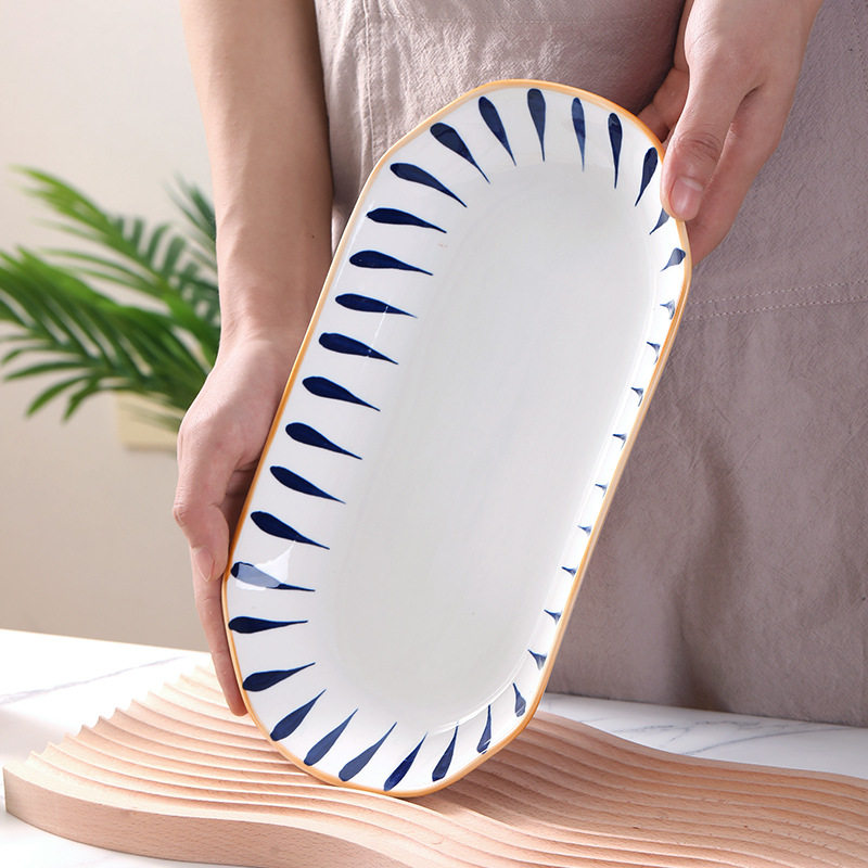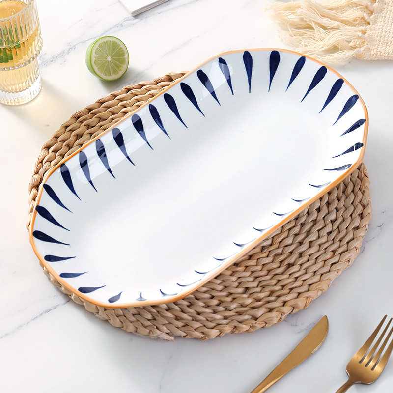 📚 鱼盘家用陶瓷餐具高级感网红日式釉下彩千叶草盘子菜盘餐盘12英寸