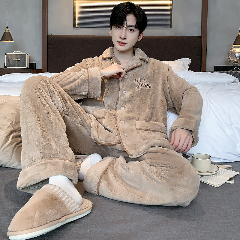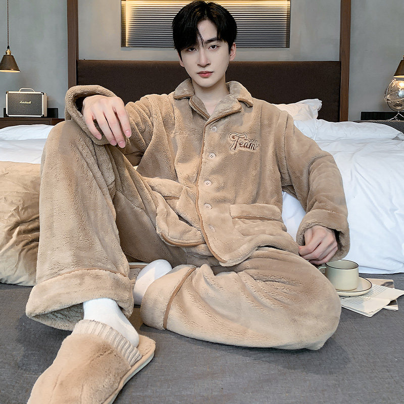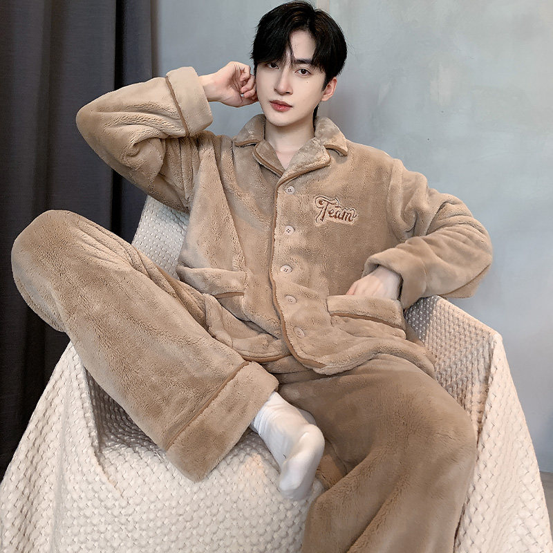 📚 三枪睡衣男款秋冬季加厚保暖珊瑚绒冬款家居服冬天加绒法兰绒套装