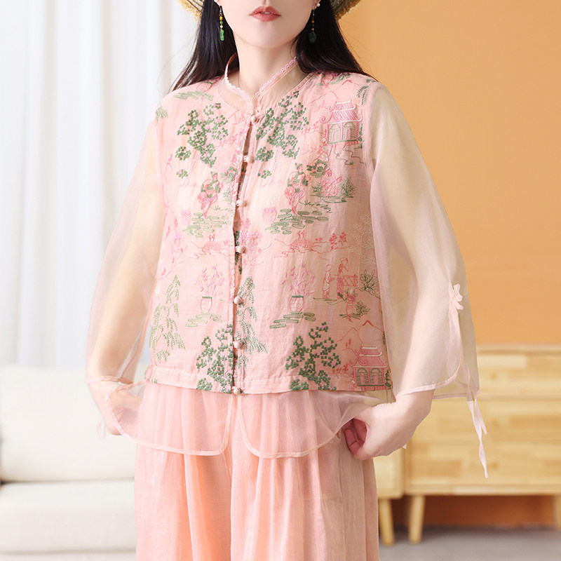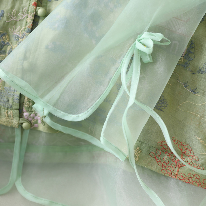 📚 绿素棉 仙气飘飘 梦幻刺绣轻纱苎麻上衣 女新款新中式唐装衬衫 夏
