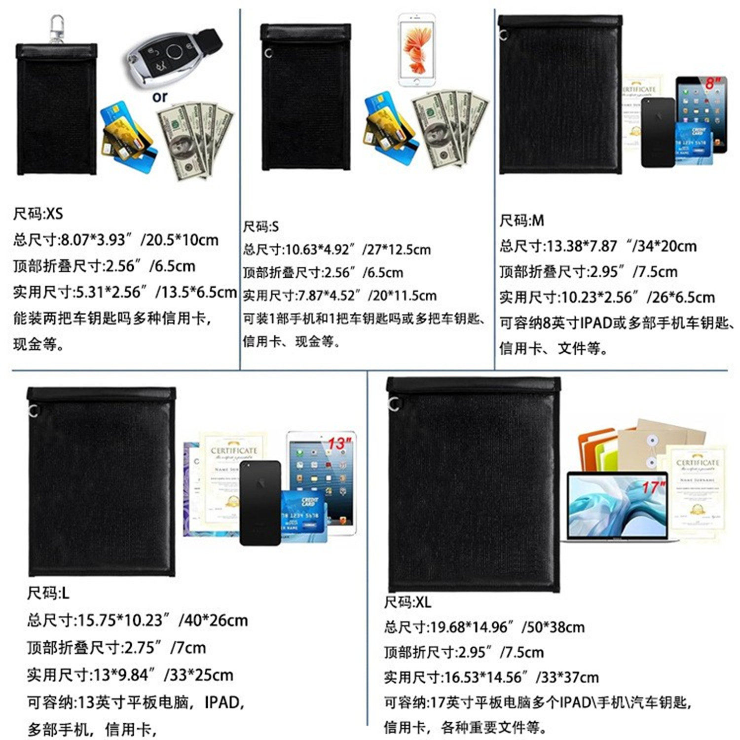 📚 放黄金收纳袋防信号探测器仪屏蔽袋大号防火防水防磁手机平板电脑