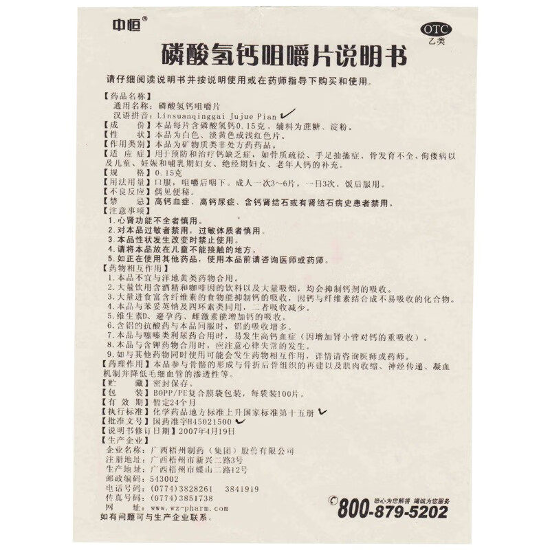📚 整桶100袋】中恒磷酸氢钙咀嚼片钙缺乏症老人儿童补钙老式钙片