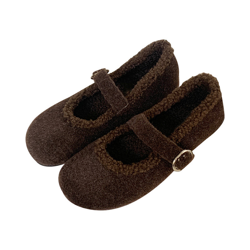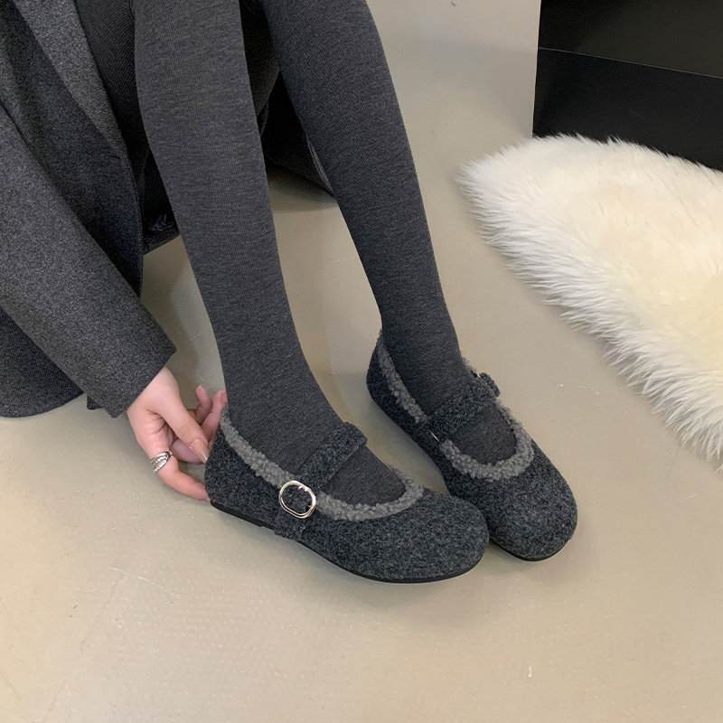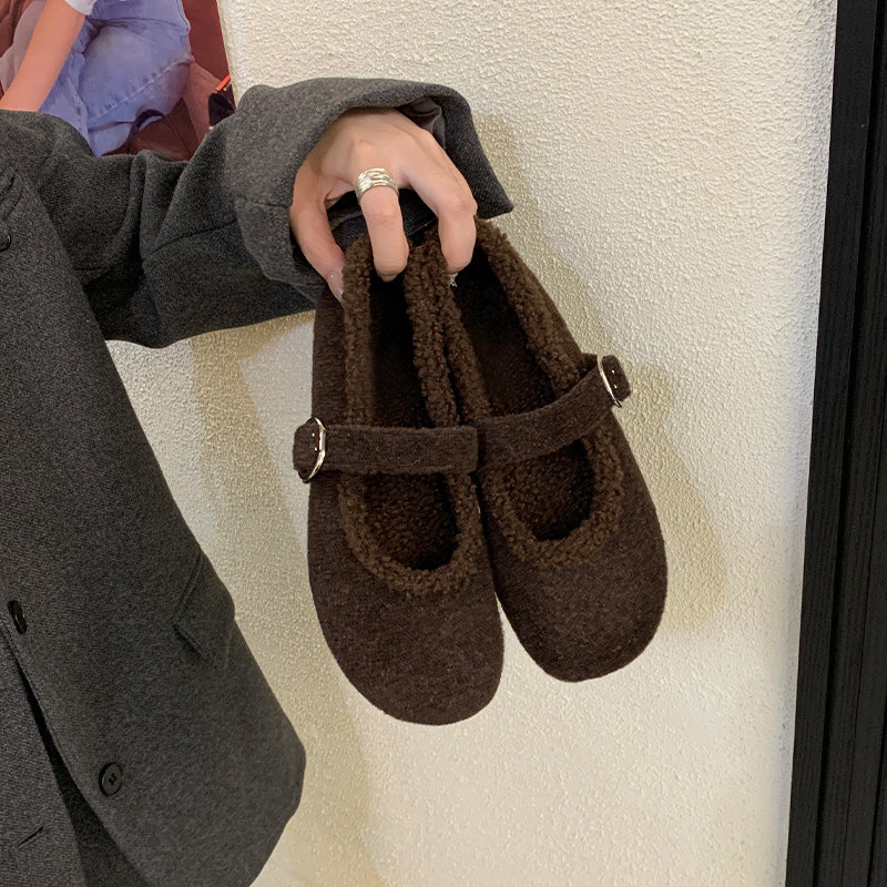 📚 毛绒玛丽珍鞋大码女鞋41-43码单鞋25冬新款复古毛毛鞋40 42宽胖脚