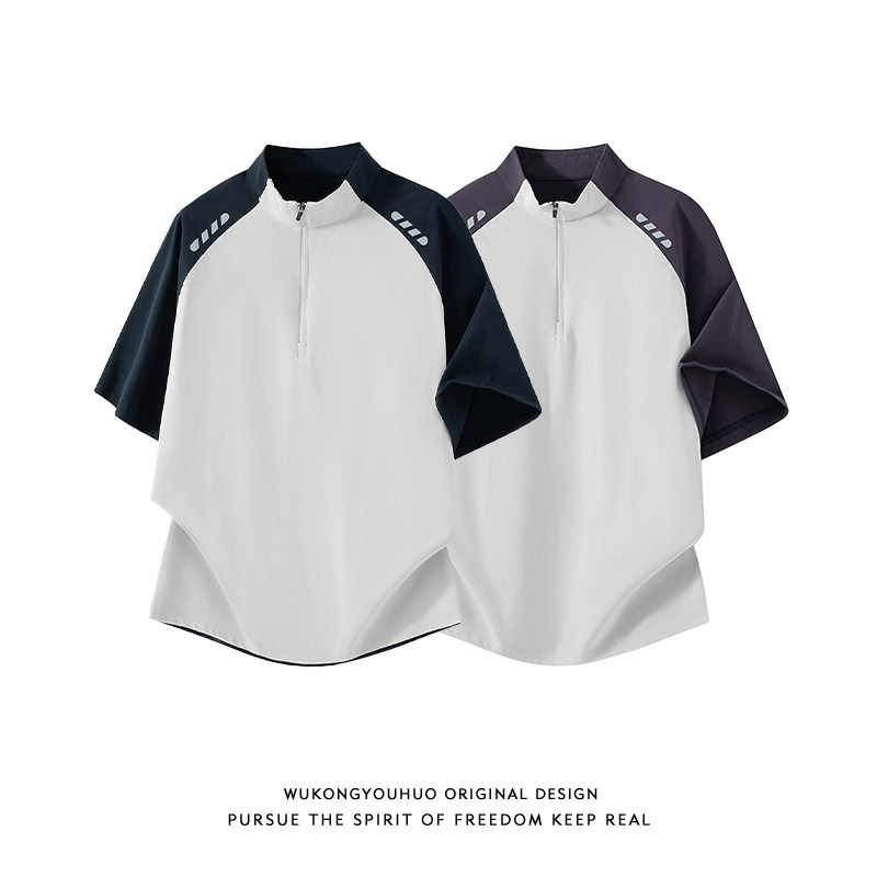 📚 悟空有货夏季半拉链索罗娜速干短袖T恤男女宽松户外运动百搭上衣