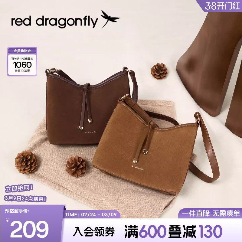 📚 红蜻蜓复古麂皮绒面单肩斜挎包新款小号托特包通勤百搭时尚水桶包