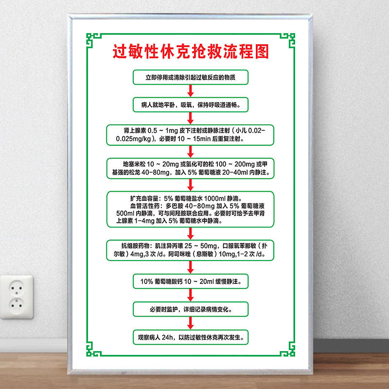 📚 过敏性休克抢救流程图急救流程图医院诊所预防接种心肺复苏过敏性
