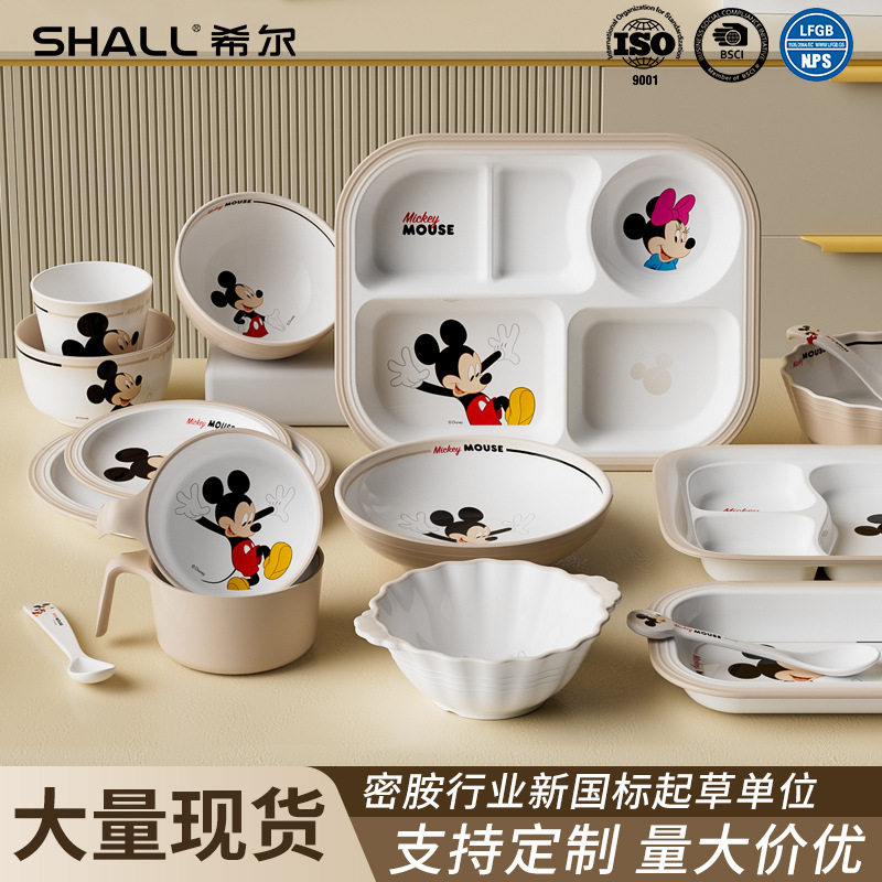📚 希尔米奇米妮儿童餐具带手柄宝宝辅食碗密胺分格盘子餐盘杯子