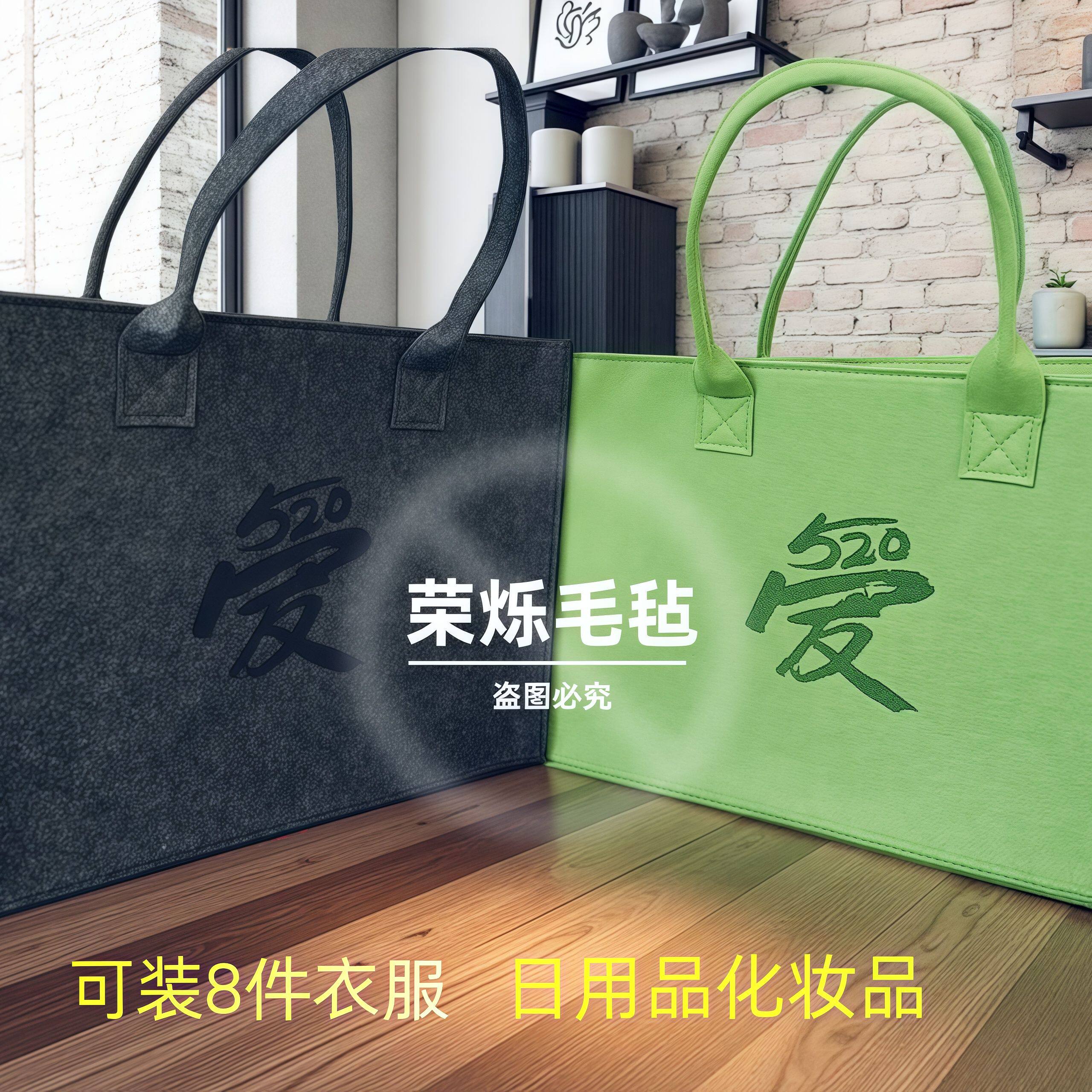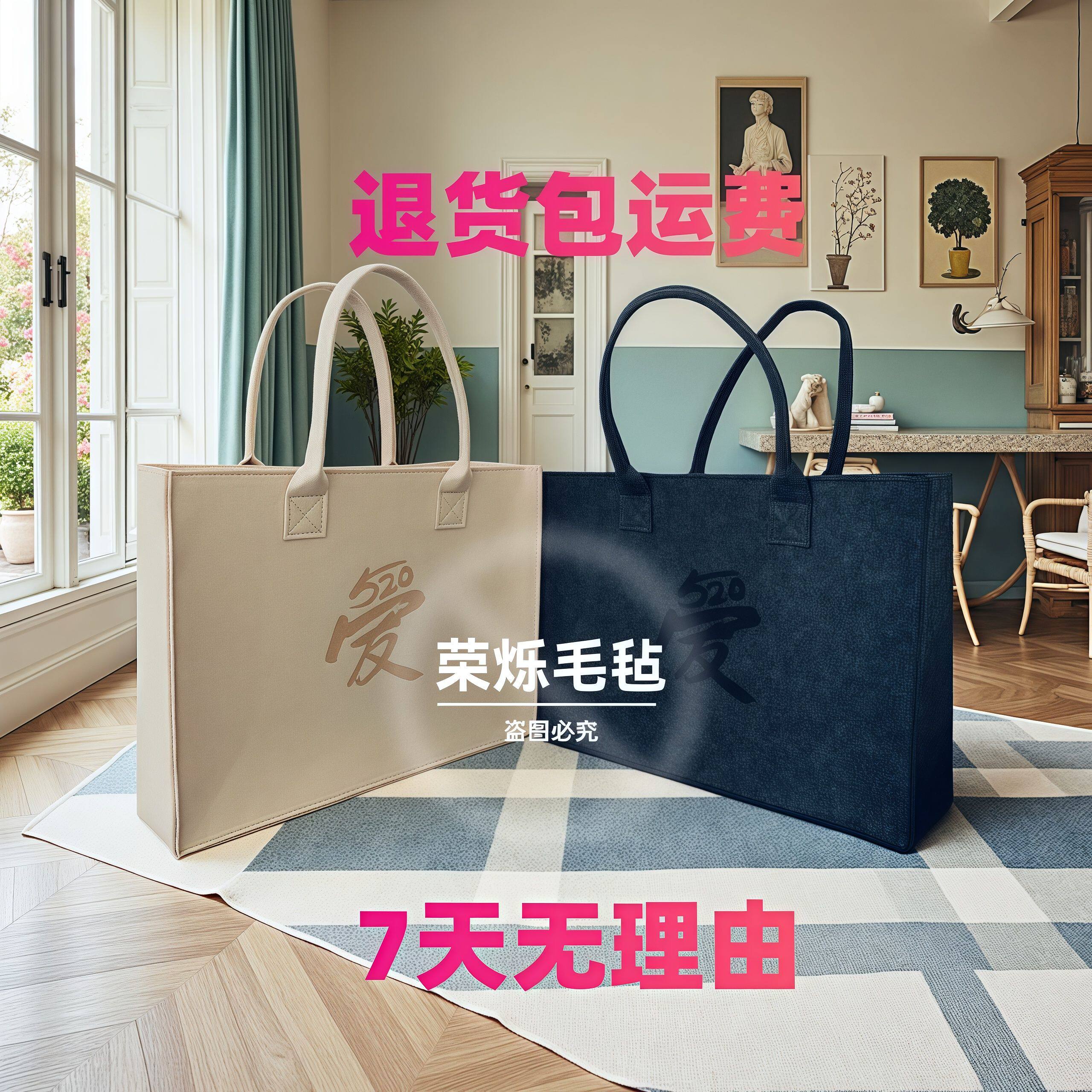 📚 新款拉链手提包女士手提袋手拎包大容量带拉链毛毡购物袋可定制