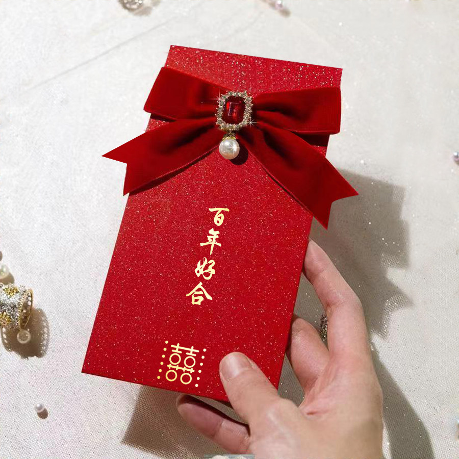📚 结婚订婚红包高档创意手工布艺缎带花利是封随礼份子钱改口红包袋