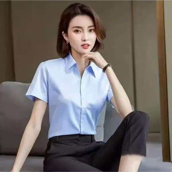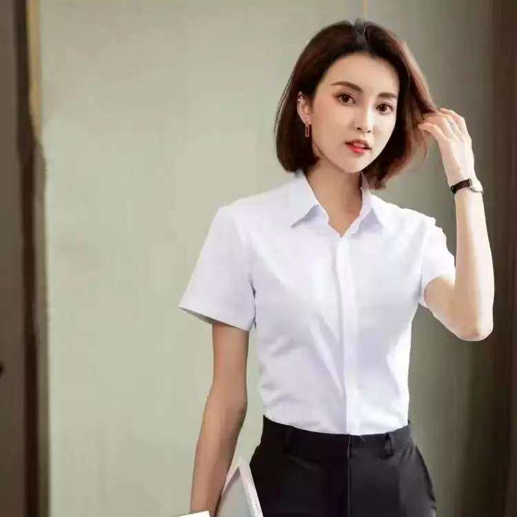 📚 V领白色衬衫女短袖韩版正装工装职业修身工作服商务通勤衬衣女