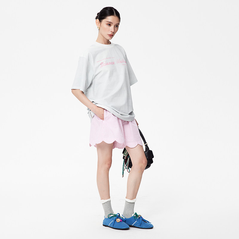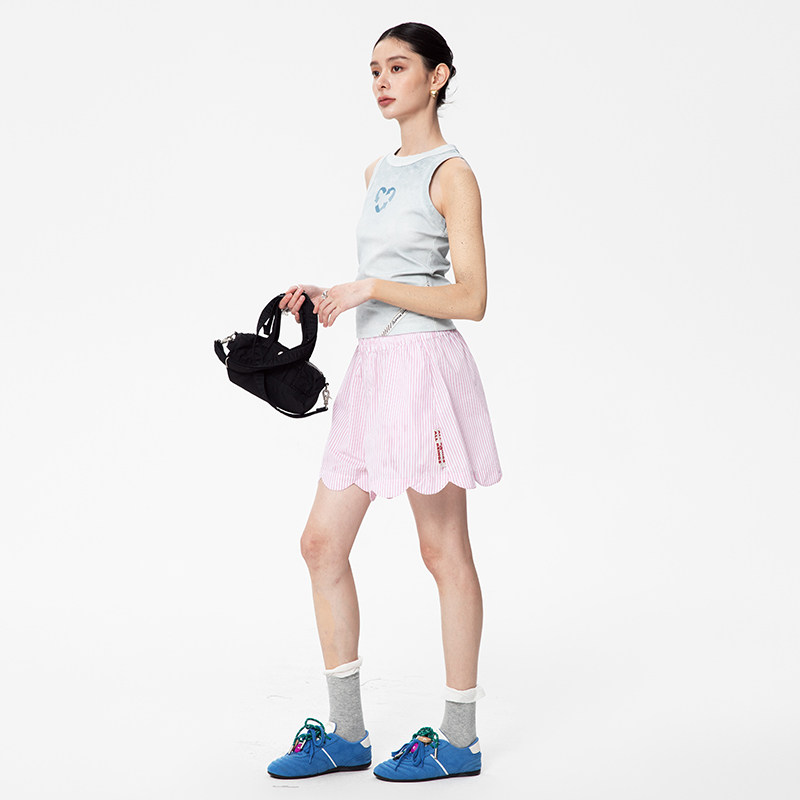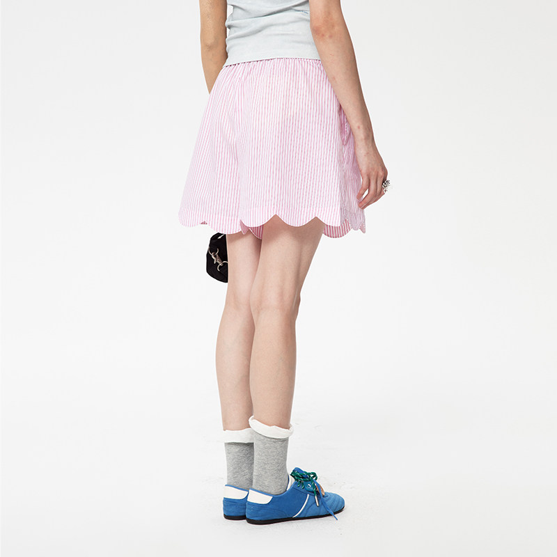 📚 【张予曦同款】ALL BEINGS25SS设计感粉色条纹波浪短裤女夏季新款