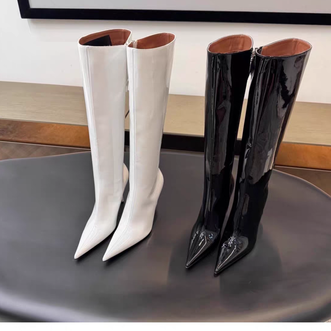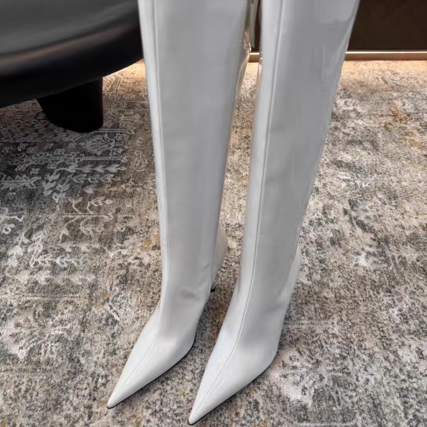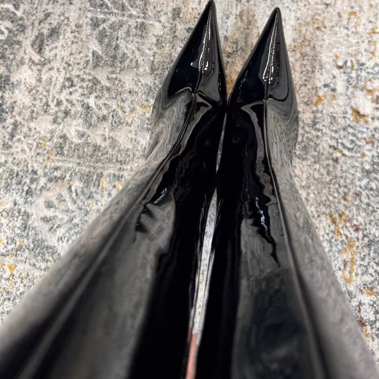 📚 米西家尖头细跟高筒靴子女2025秋冬新款拉链黑色漆皮辣妹长靴百搭