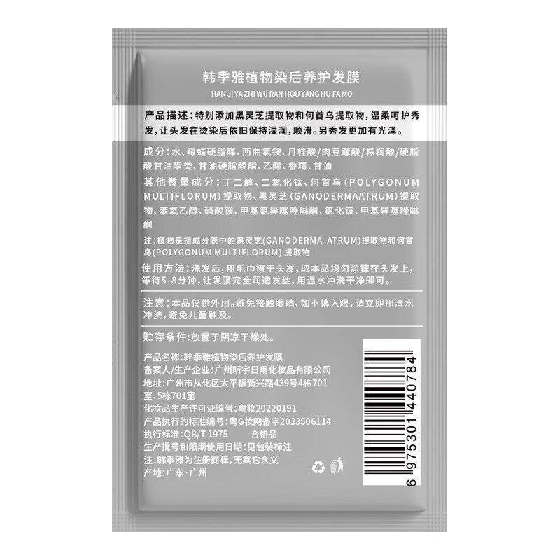 📚 韩季雅植物染后护理发膜柔和细腻护色改善干枯毛躁染发修复柔顺