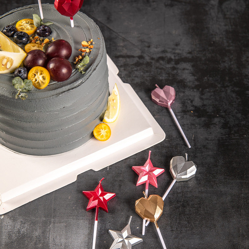 📚 金色爱心星星银色周岁生日蛋糕数字年龄蜡烛装饰摆件彩色派对儿童