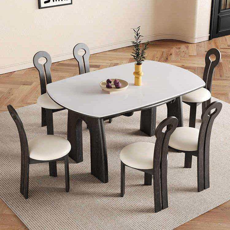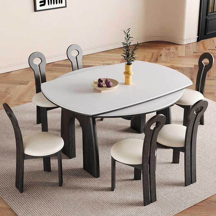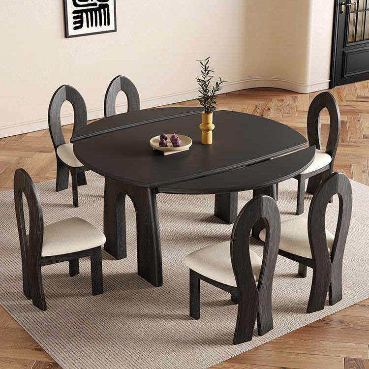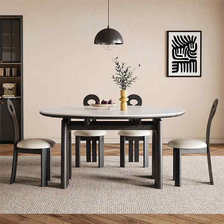 📚 中古板黑色实木实木餐桌白岩可伸缩折叠餐桌法色式小户风形方可变