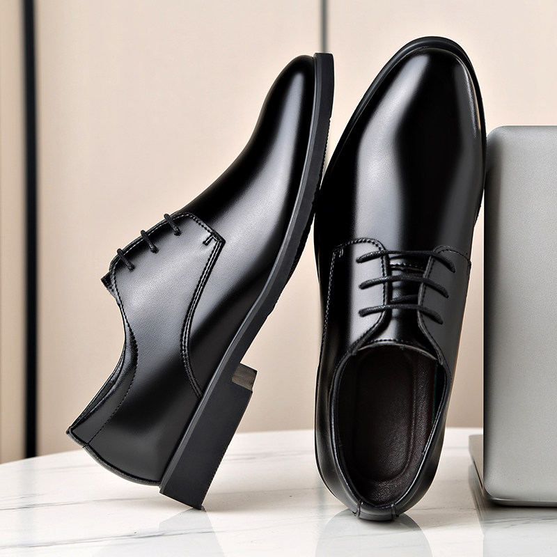 📚 上班工作面试正装皮鞋黑色系带透气毕业照摄影伴郎婚鞋软皮男鞋子