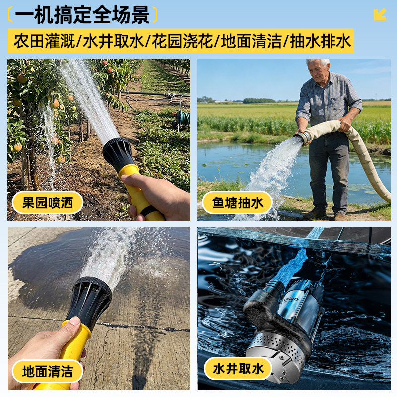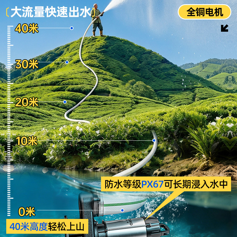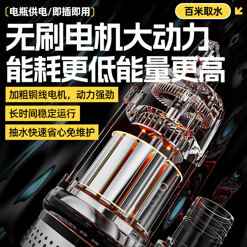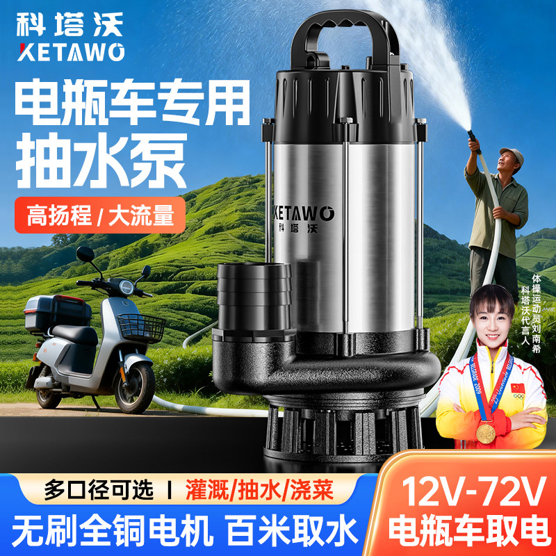 📚 电瓶车专用潜水泵农用灌溉浇菜大流量无刷直流抽水泵12V48V60V72V