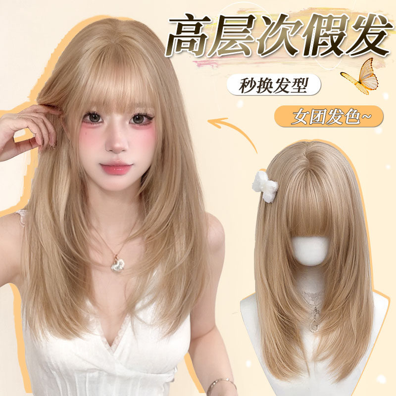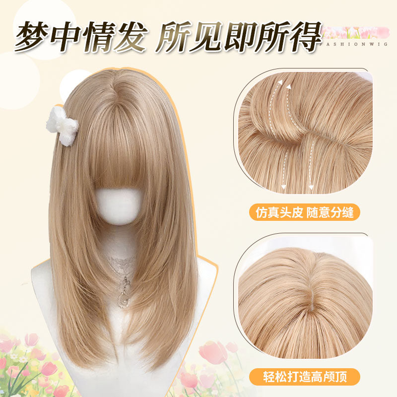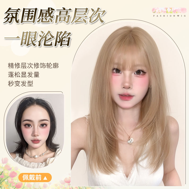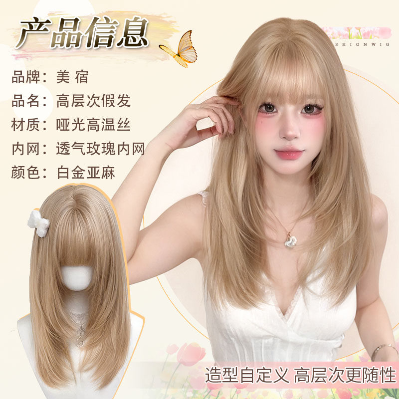 📚 美宿假发女长发亚麻金假发夏天薄款仿真发甜美日常金色显白假发套