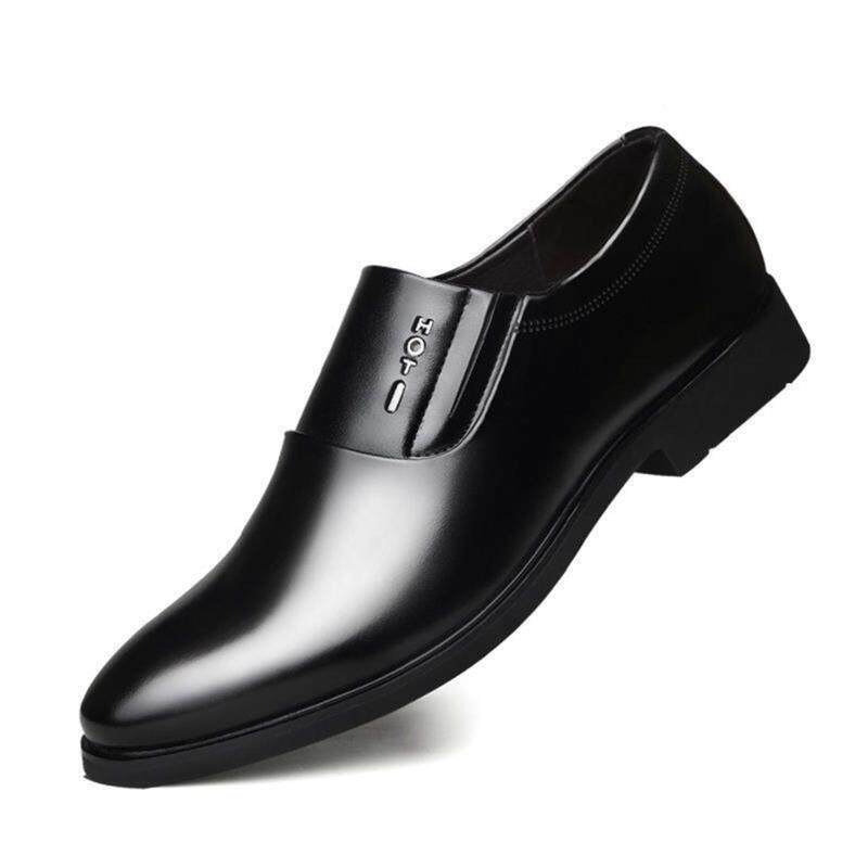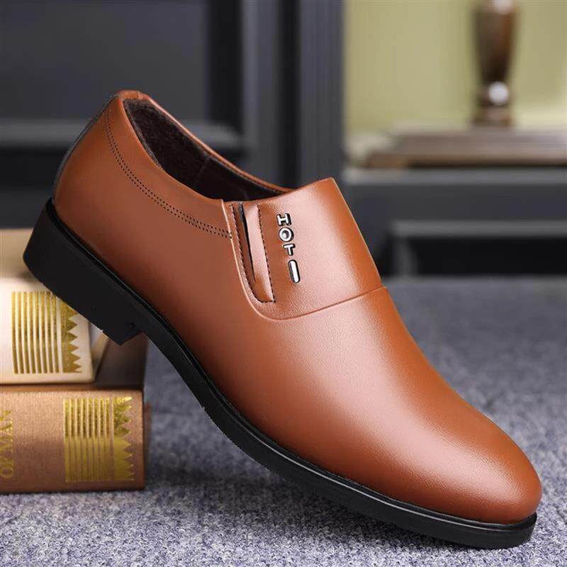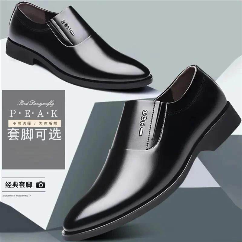 📚 点击率甄选真软皮潮鞋加绒商务正装皮鞋男士休闲套脚保暖男棉鞋