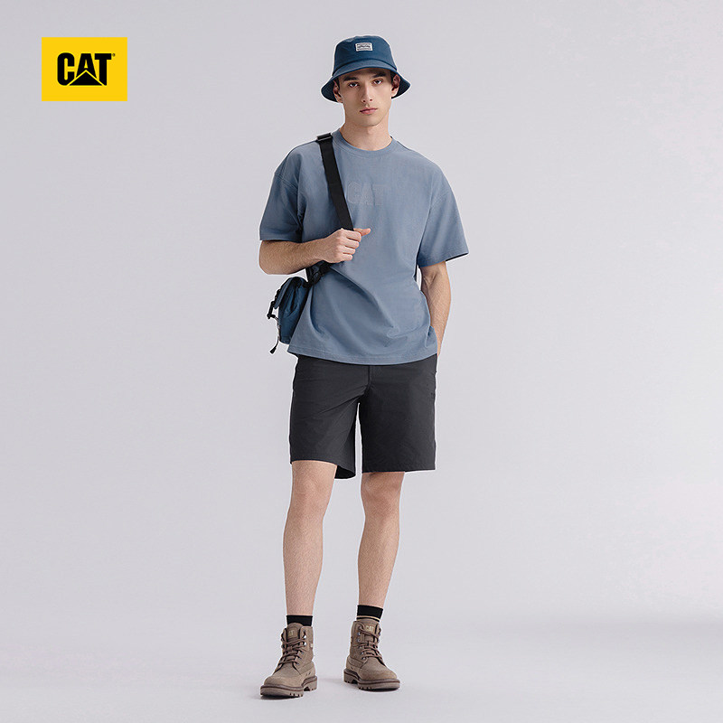 📚 CAT卡特25夏季男士户外休闲宽松网眼绣花水洗短袖字母T恤
