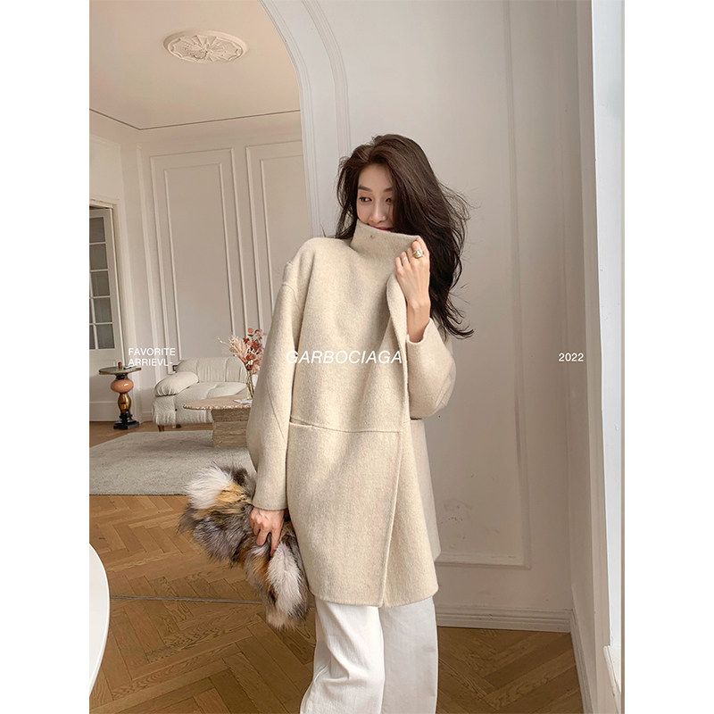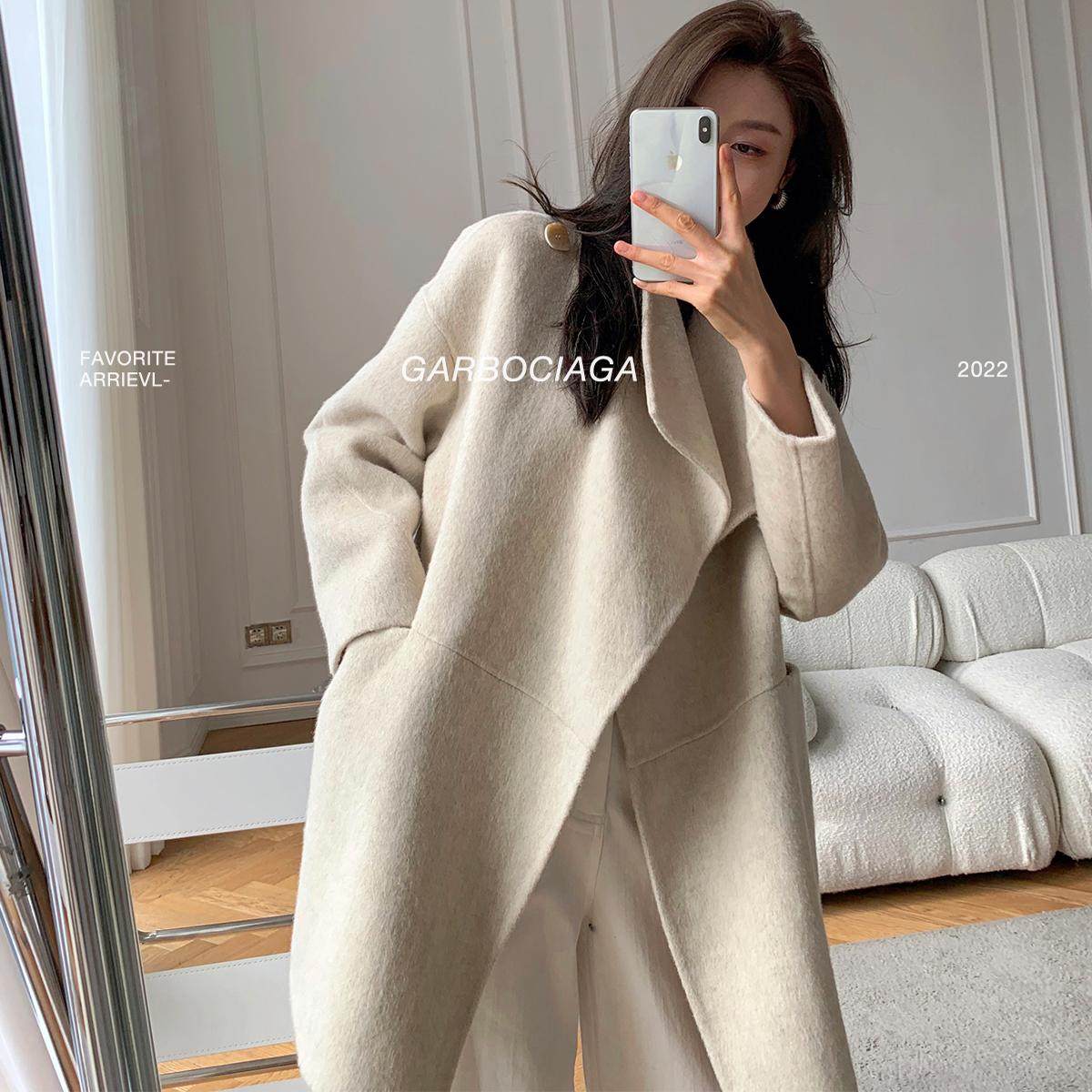 📚 Garbociaga龙喜儿 80绵羊毛 短款翻领双面毛呢围巾大衣外套女0134