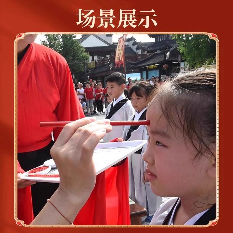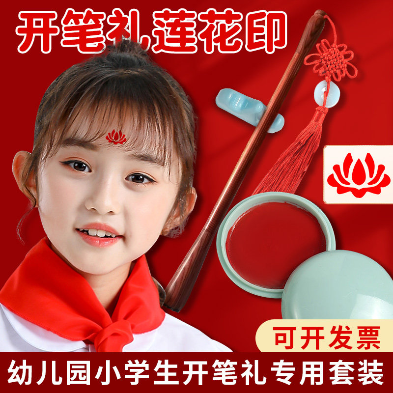 📚 小学生开笔礼人字帖朱砂启智笔套装朱砂液墨点额头朱砂印泥小女孩点莲花印儿童入学国学典礼点睛点痣专用