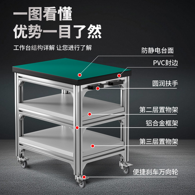 📚 防静电手推车双层物料周转车带轮工作台小分拣桌车间可移动工具车