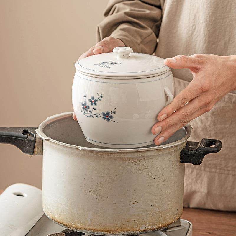 📚 闽南溢汤专用锅大号溢鸭汤滴汤陶瓷隔水炖盅内胆带孔免过滤小汤盅