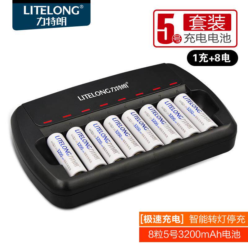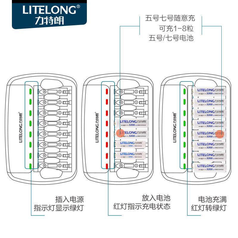 📚 力特朗电池充电器5号智能变灯8槽可充7号AA充电电池充电器J58套装