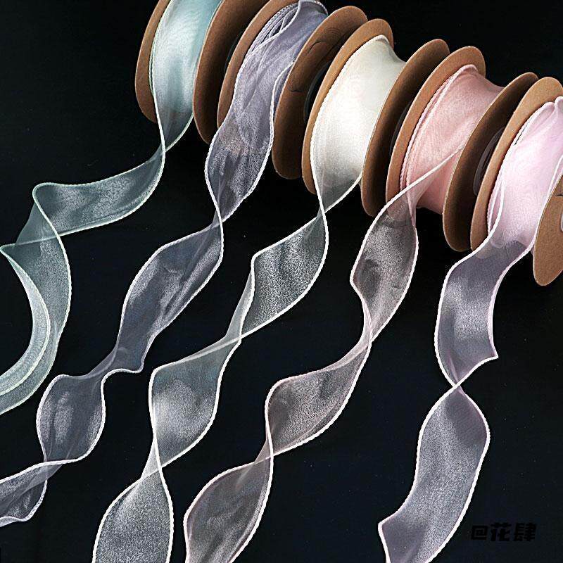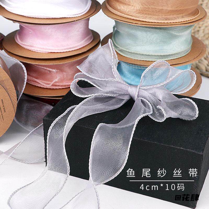 📚 金边美人鱼尾纱丝带雪纱花束包装蝴蝶结手工材料波浪彩带鲜花花艺