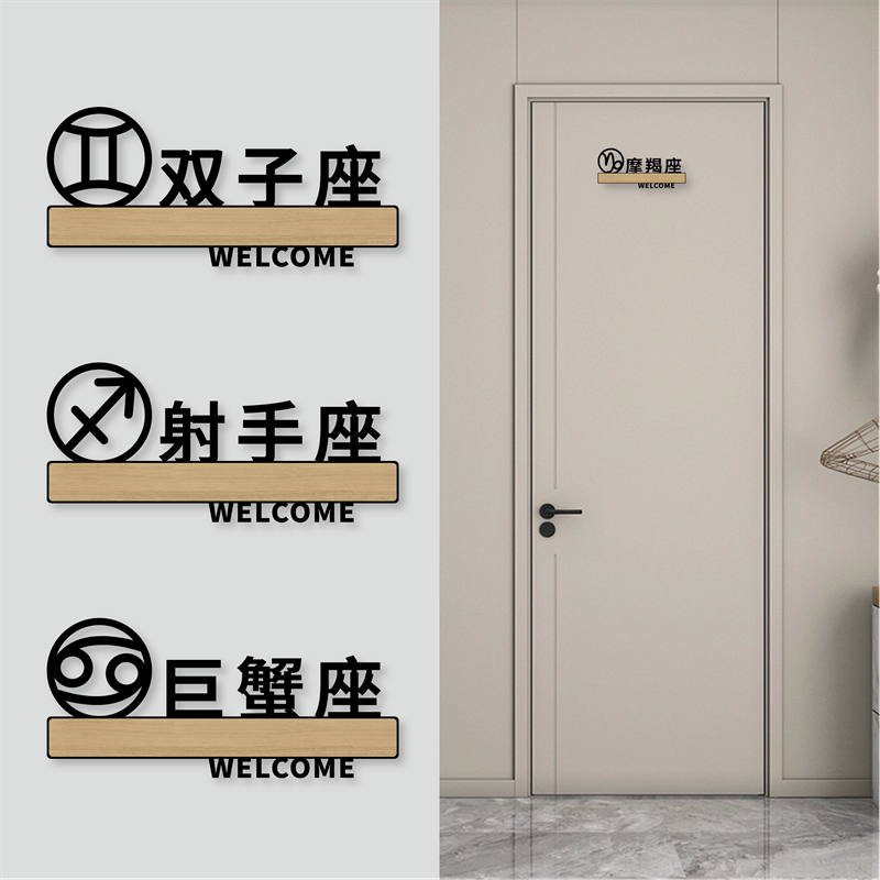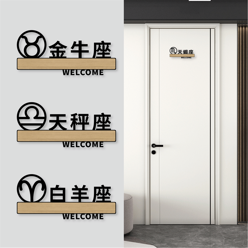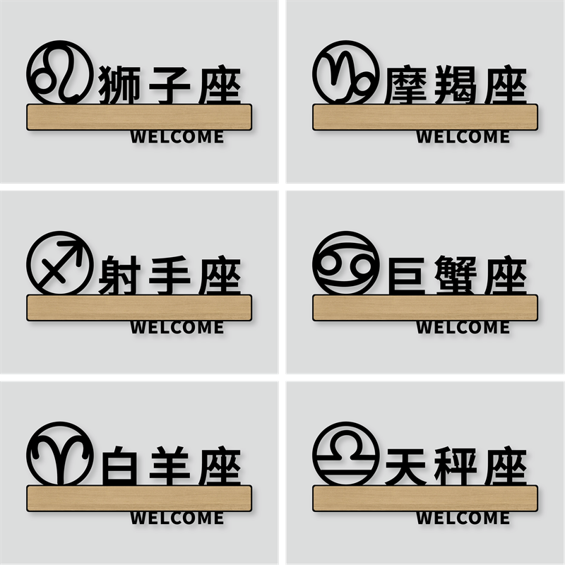 📚 亚克力镂空个性标志牌饭店酒店牌室包厢门牌贴茶楼茶社电竞雅间指示牌十二星座双鱼天蝎水瓶射手金牛座标示牌